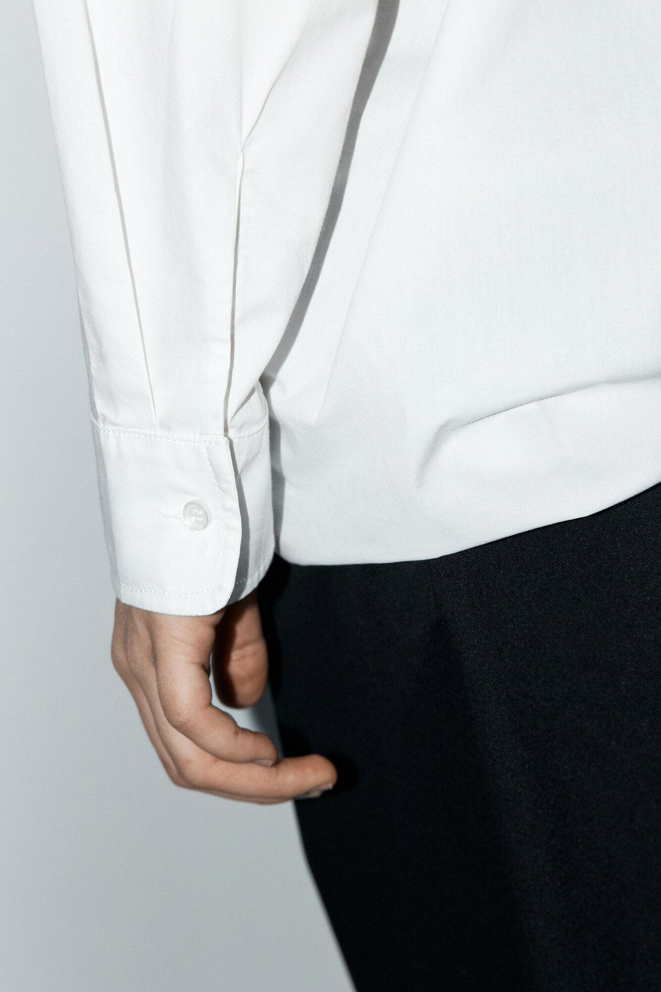 - Длинные рукава с широкими манжетами на пуговицах