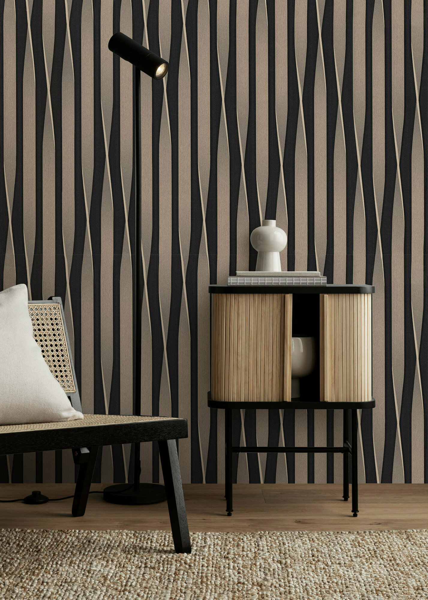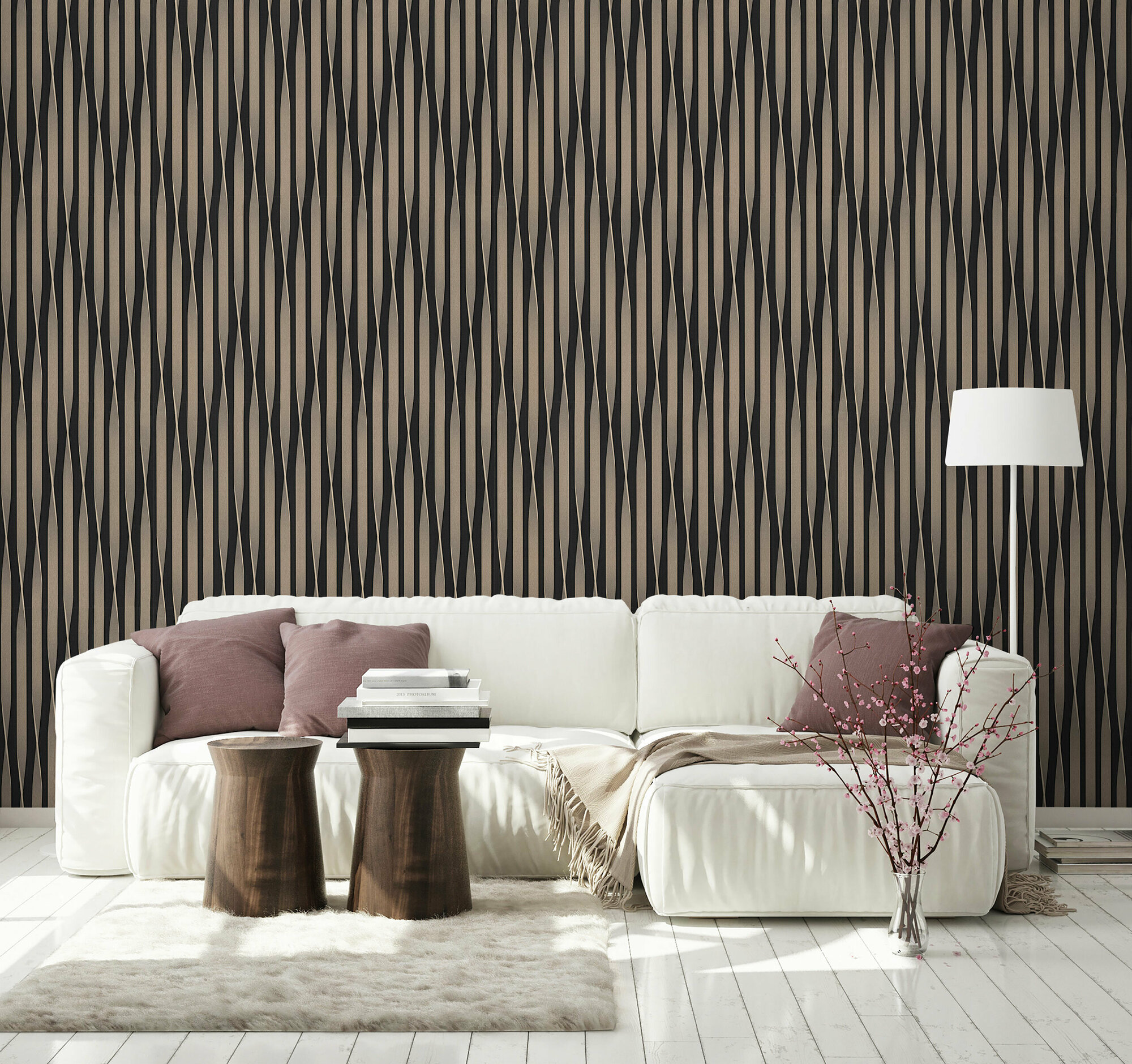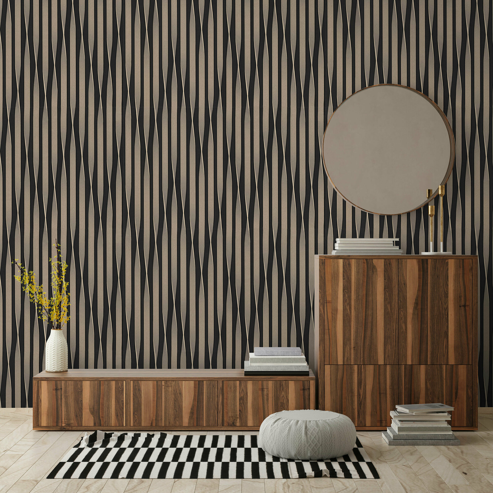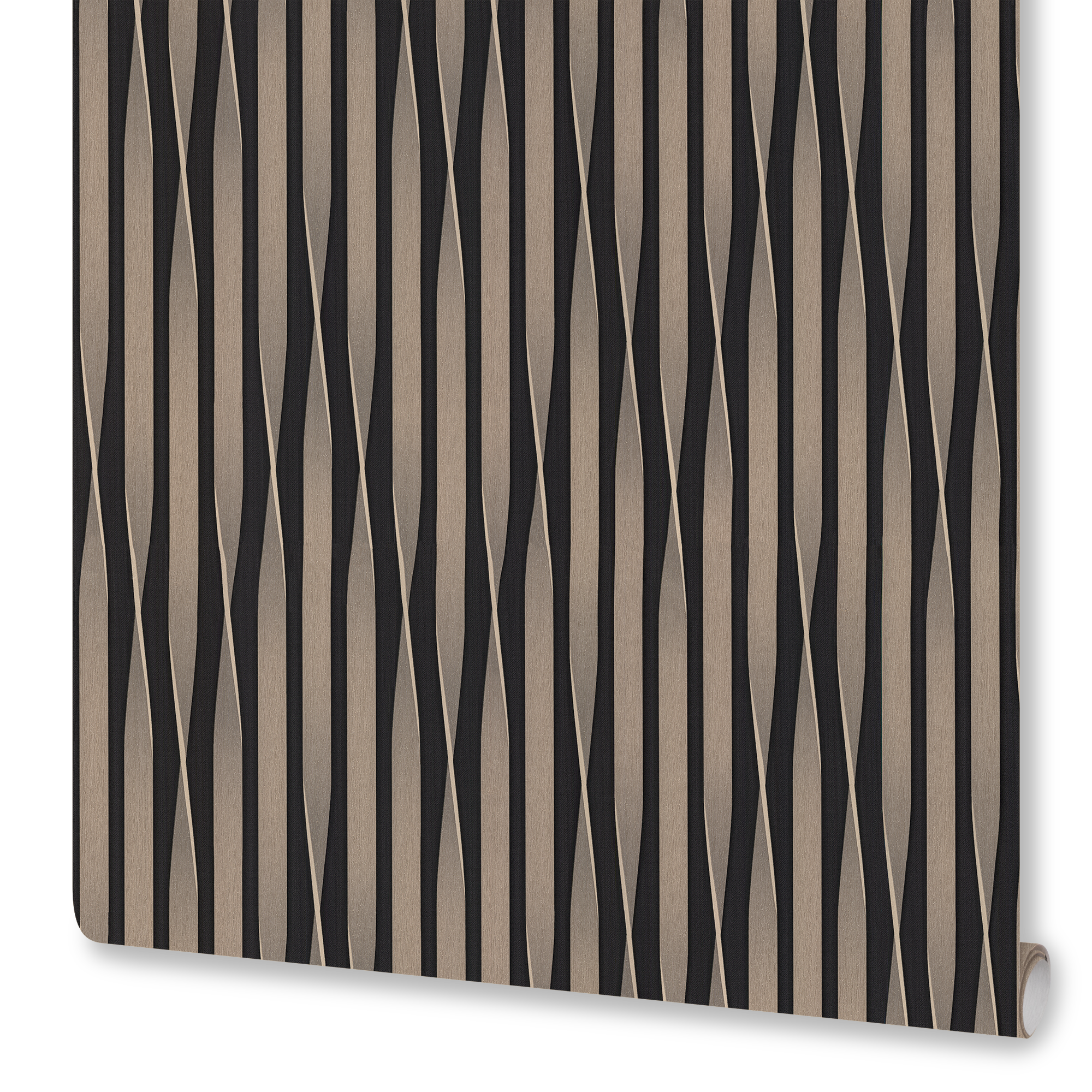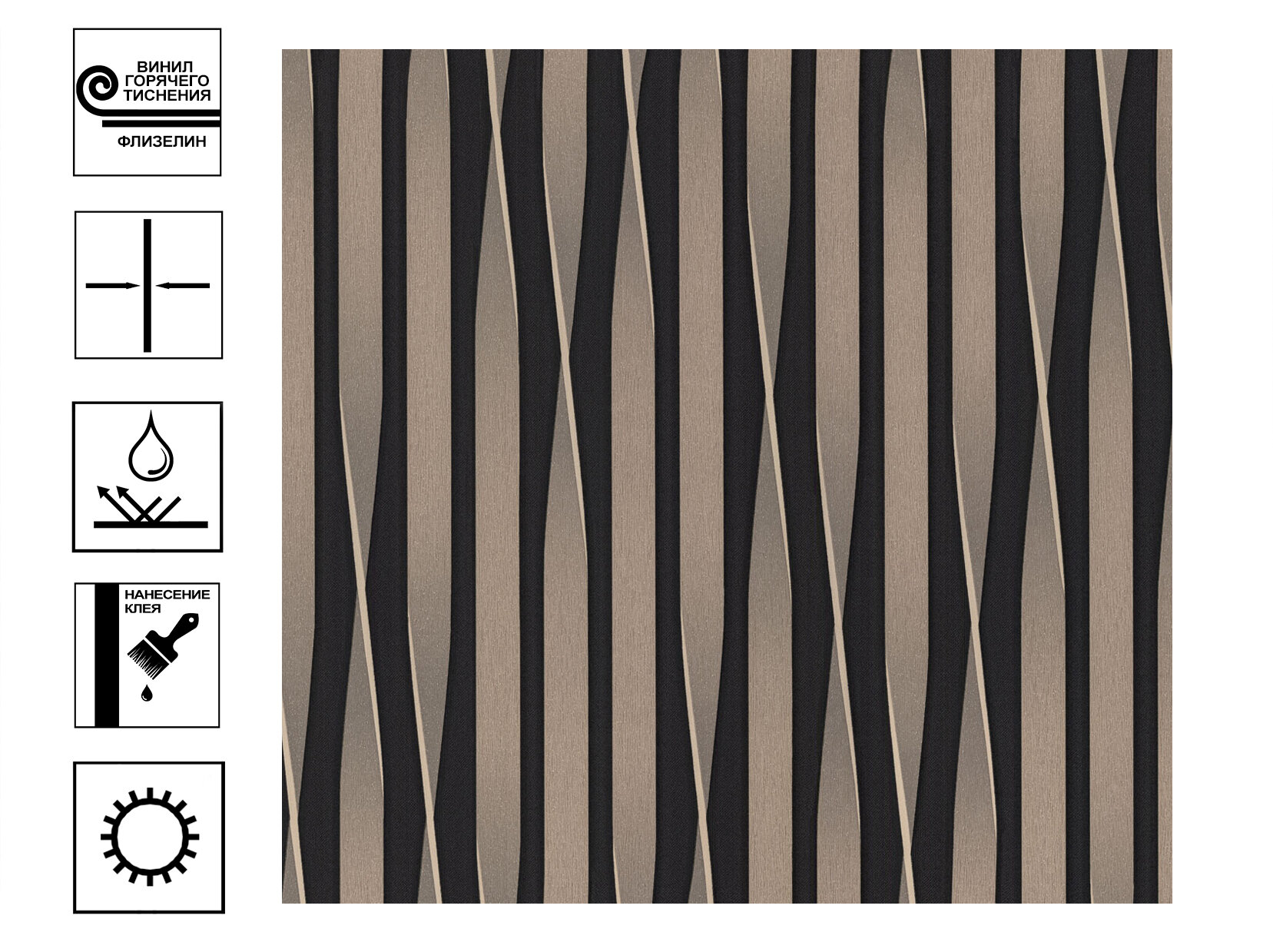 Коллекция «Helix» — это классический дуэт из мотива и фона. Длинные вертикальные полосы легли в основу мотива коллекции. Закручиваясь, они создают необычный 3D-эффект. Эту иллюзию усиливают многообразие оттенков и необычная передача света и тени. Изгибы лент развивают динамику полотна и образуют дополнительный зигзагообразный узор, который проявляется на расстоянии. Наложение металлика на отдельные линии тиснения полос делает их яркими, а перламутр добавляет естественного сияния. Задний фон мотива имитирует текстиль с мелким ритмичным плетением и удачно контрастирует с фактурой основного орнамента. Спокойный фон коллекции представляет собой текстуру необработанной штукатурки с активным рельефом и деликатными спецэффектами. Он гармонично дополняет мотив и подчеркивает его изысканность. Подбор 64 см. Компаньон - 7231-22