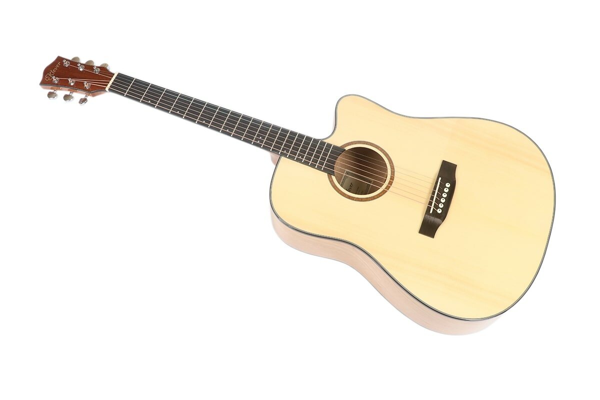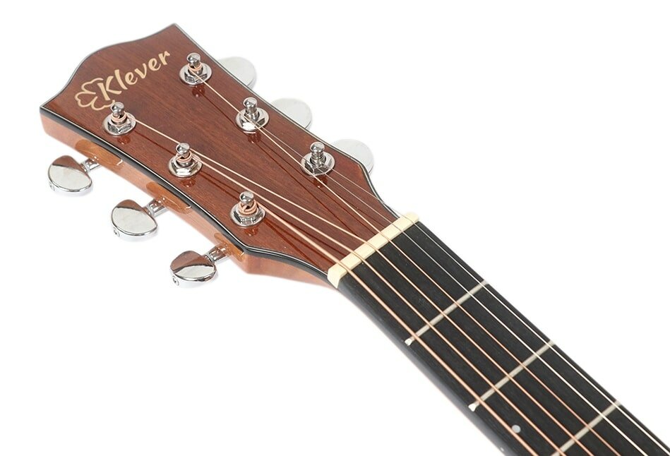 Гитара акустическая Klever - это инструмент высокого качества, который обладает богатым и насыщенным звучанием. Традиционный дизайн дредноутов в сочетании с громким акустическим звучанием и хорошими игровыми качествами делают этот инструмент идеальным выбором.Ширина грифа - 4,4 см на первом ладу, 5,5 см на последнем ладу.