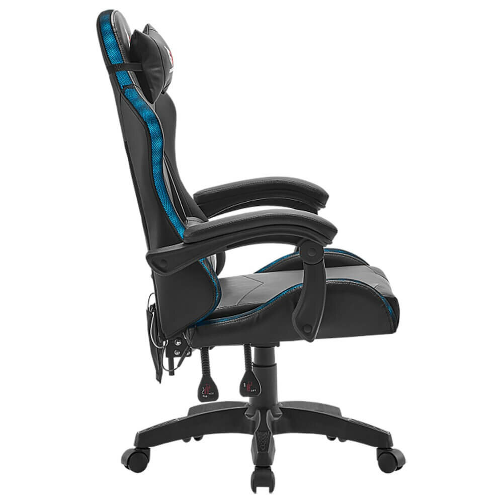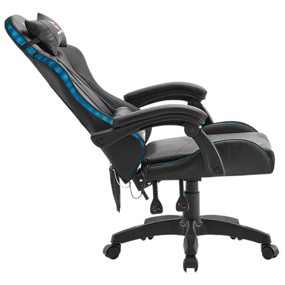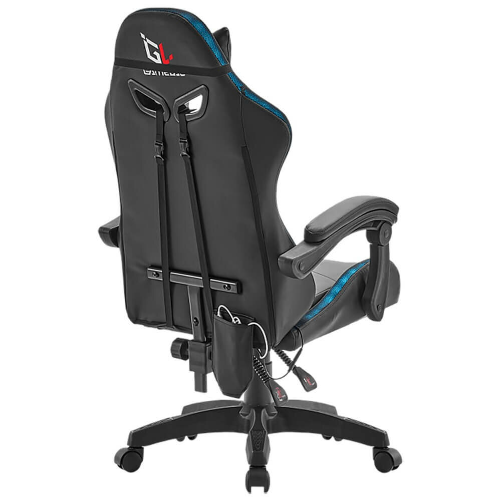 Раскладываемая спинка позволяет максимально удобно расположиться в кресле, а многофункциональный механизм позволяет настроить кресло под индивидуальные предпочтения пользователя. Фиксированные подлокотники кресла отделаны экокожей, что придает им стильный вид и повышает их долговечность. Настраиваемая высота позволяет удобно расположиться за компьютером, а газлифт 4-го класса обеспечивает плавность хода и выдерживает нагрузку до 120 килограмм. Основание кресла выполнено из прочного нейлона, а 60-миллиметровые полиуретановые колеса обеспечивают бесшумное и плавное перемещение по помещению. В комплекте с креслом идут эргономичные подушки для шеи и поясницы, украшенные вышивкой с логотипом GL.