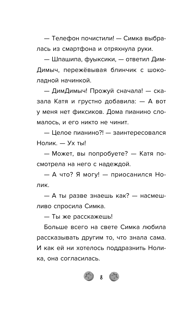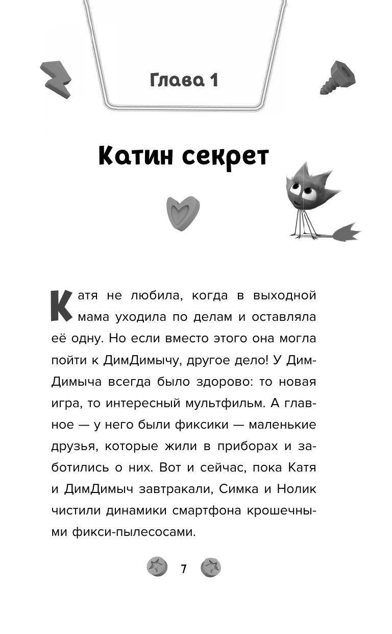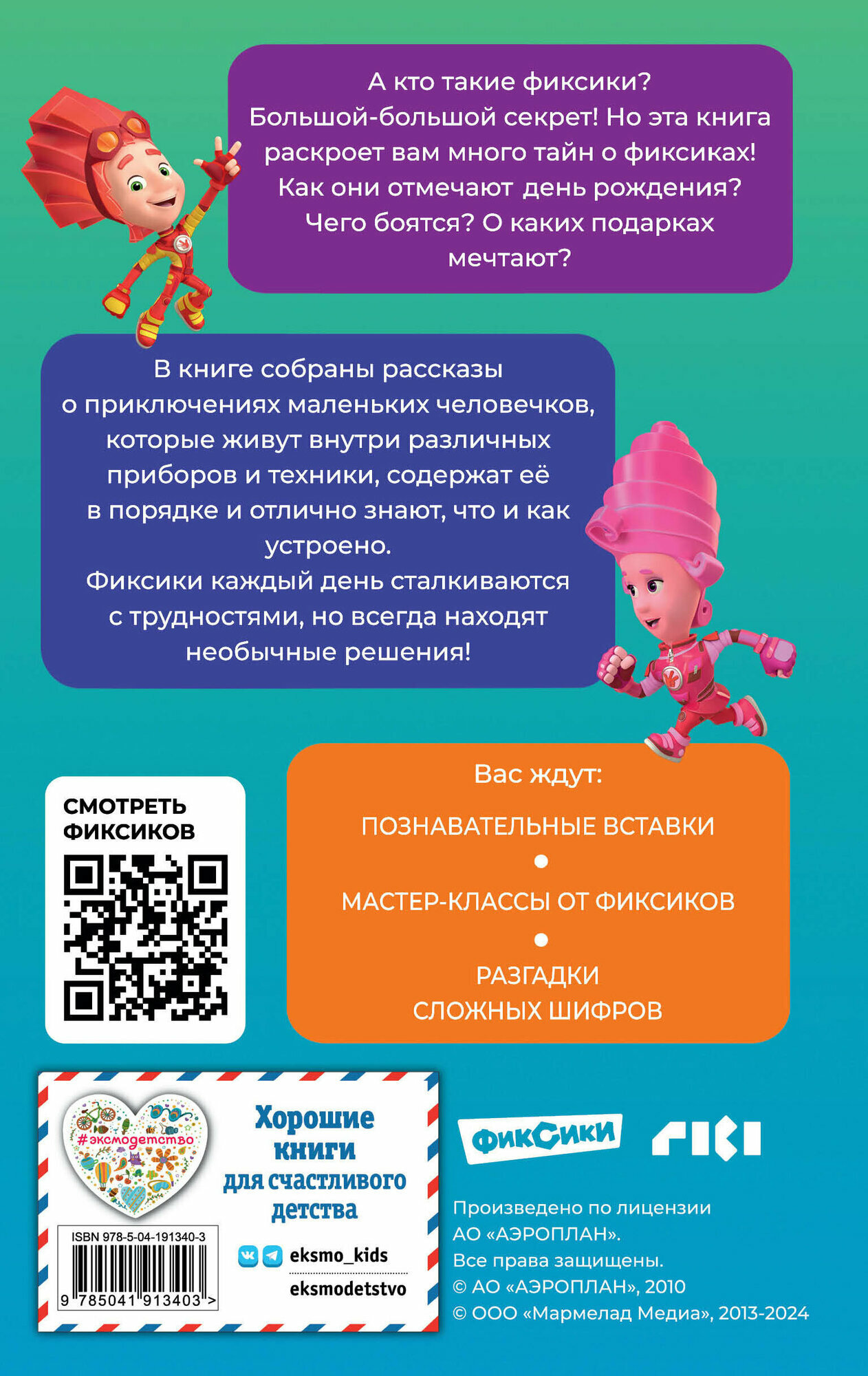 Новинка по анимационному хиту «Фиксики» - сборник рассказов с познавательными вставками, мастер-классами от фиксиков и цветными вклейками! А кто такие фиксики? Большой-большой секрет! Но эта книга раскроет вам много тайн о фиксиках! Как они отмечают день рождения? Чего боятся? О каких подарках мечтают? В книге собраны рассказы о приключениях маленьких человечков, которые живут внутри различных приборов и техники, содержат ее в порядке и отлично знают, что и как устроено. Фиксики каждый день сталкиваются с трудностями, но всегда находят необычные решения! «Фиксики» стали «Главным познавательным анимационным сериалом» по итогам премии «Главные герои-2023». Яркая обложка, плотная бумага, черно-белые иллюстрации и цветные вклейки с персонажами. Рассказы написаны легким слогом, поэтому подойдут и для самостоятельного чтения.