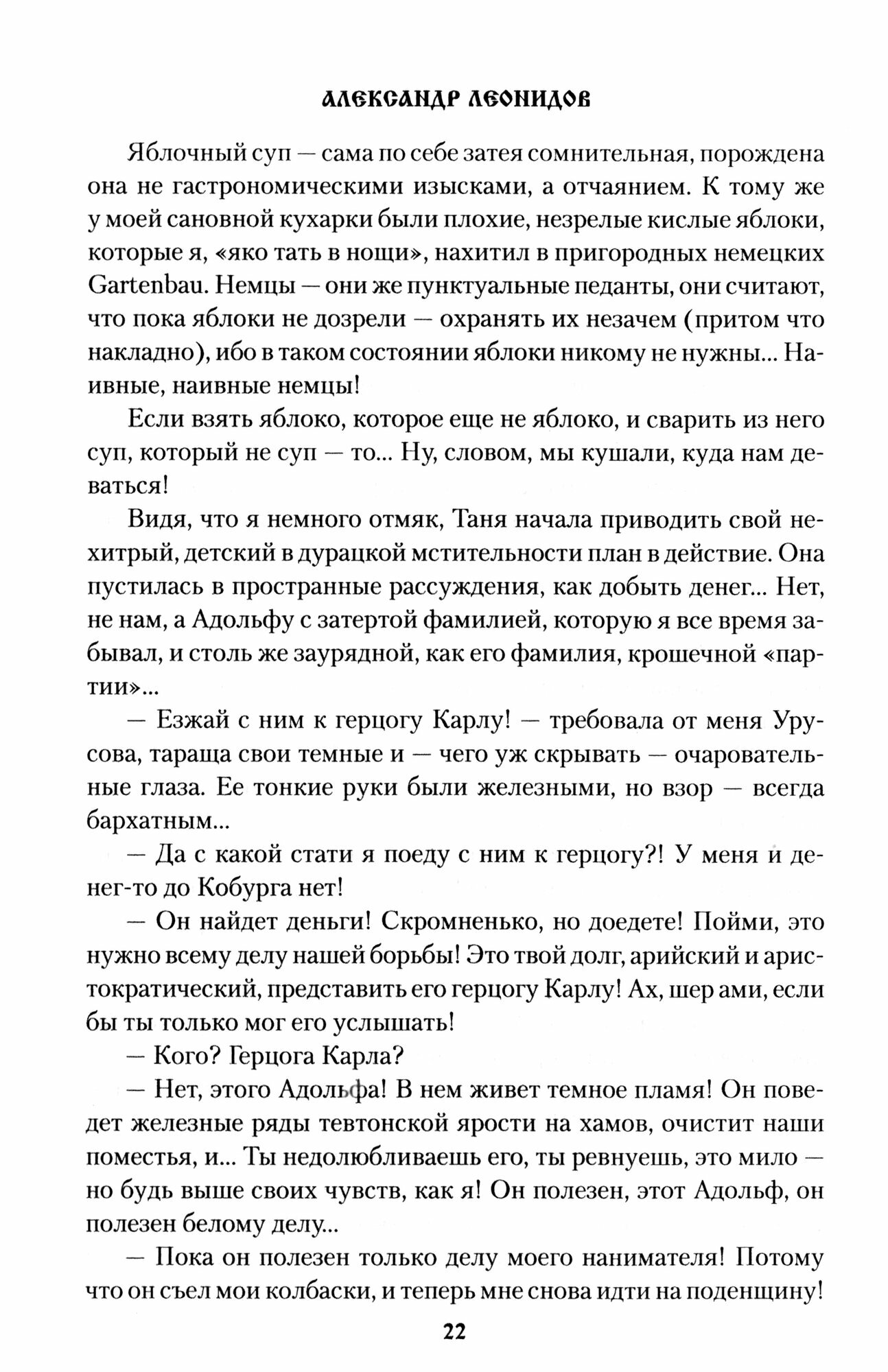 Роман "Псы руин" рассказывает о волне русской эмиграции первой половины ХХ века, о становлении нацизма в Германии, о русской аристократии, "жертвовавшей" фамильные бриллианты на "борьбу с коммунистами", о причинах германского нашествия, тесно связанных с Гражданской войной в России. Александр Леонидов - уроженец города Уфы, автор двадцати книг художественной прозы, член Союза писателей России, лауреат Литературной премии имени Василия Шукшина.