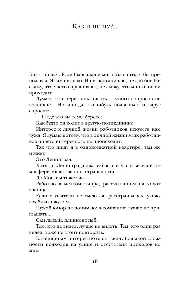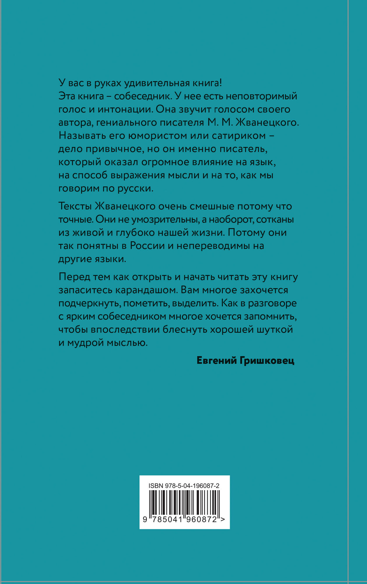 "Из кусочков, что я рисую, кто-то сложит картину. Здесь, как в детстве, все есть. Вразброс, конечно. Сам ленив, неподвижен, с коротким дыханием, мелким шагом и многими целями. Написал и это же произнес. В таком жанре, в каком получилось. В крайнем случае, произнесите вы и сообщите мне, какой это жанр. Пребываю и обнимаю вас. " В книгу вошли известные тексты, которые многие помнят и цитируют. Юмор самая притягательная грань таланта Михаила Жванецкого. Его смех - покрова вечных вопросов и горьких истин, над которыми человек не может не задумываться. Ведь все о чем писал и говорил маэстро Жванецкий - это наша жизнь. А кто еще сумел так о ней сказать?