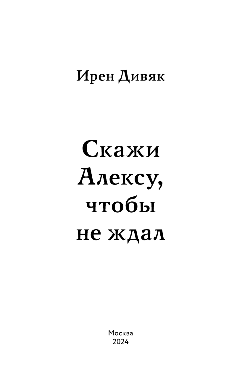 Скажи Алексу чтобы не ждал (Ирен Дивяк); Эксмо, Inspiria, Редакция 1, 2024