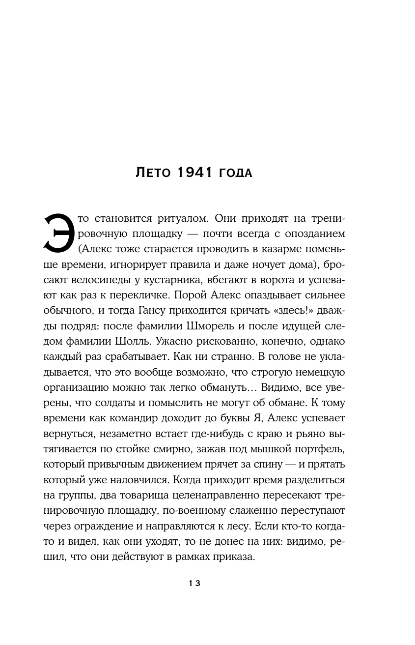 Мюнхен, 1941 год. На первый взгляд кажется, что двух студентов - Ганса Шолля и Алекса Шмореля - мало что связывает, пока однажды они оба не сбегают с занятий по военной подготовке, предпочтя искусство и литературу стоянию по стойке "смирно". С тех пор между ними завязывается крепкая дружба, и Ганс становится постоянным гостем на русских вечерах, проводимых в доме Алекса. Но с каждым днем война разгорается все сильнее, как и желание молодых людей высказаться против нее. Да, их затея опасна. И риск возрастает, когда младшая сестра Ганса Софи переезжает в Мюнхен - она ни при каких обстоятельствах не должна узнать о сопротивлении. Потому что оно будет стоить всем участникам жизни. Студенческое движение "Белая роза", организованное студентами Мюнхенского университета, просуществовало совсем недолго, но имена ее участников навсегда остались в истории. "Скажи Алексу, чтобы не ждал" - документальный и оттого еще более пронзительный роман о молодых людях, которые были готовы отдать жизнь во имя своих идеалов, но вместе с тем это трогательная и человечная история о дружбе, любви и неистребимой надежде.
