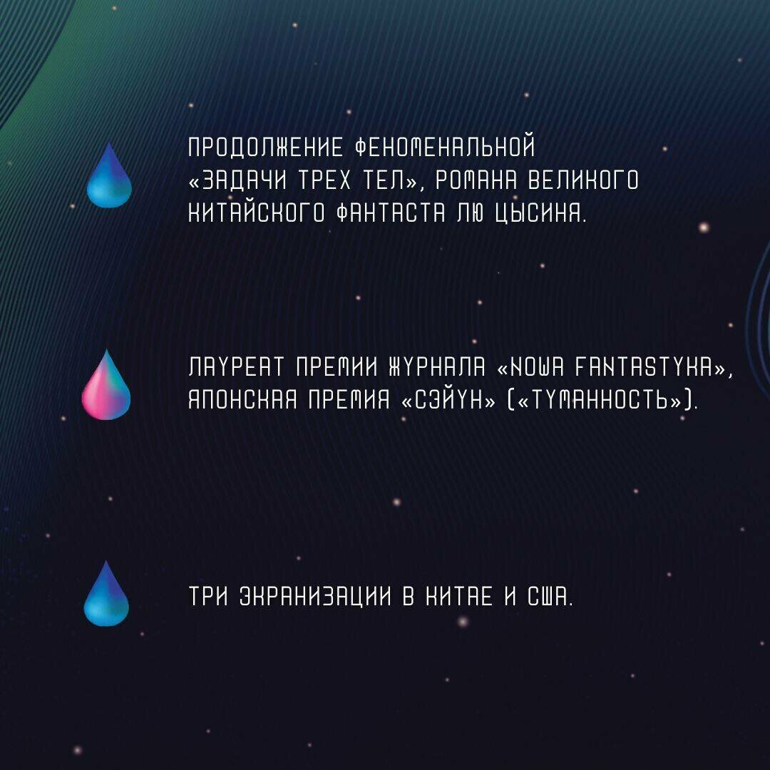 Продолжение феноменальной "Задачи трех тел", романа великого китайского фантаста Лю Цысиня. Лауреат премии журнала "Nowa Fantastyka", японская премия "Сэйун" ("Туманность"). До прибытия сил инопланетного вторжения осталось 400 лет. Земные политические лидеры не хотят объединяться перед лицом общей угрозы, каждый преследует собственные цели. А эмиссары чужой цивилизации осуществляют тотальный контроль над всеми научно-техническими разработками и саботируют их, снижая шансы землян на победу практически до нуля. Есть лишь единственный шанс - проекты "Отвернувшихся". Четверо избранных, лучшие умы Земли, разработавшие план по отражению атаки пришельцев. Они хранят его в самом безопасном месте - собственном разуме, и от их действий зависит исход войны. По мотивам цикла вышел китайский сериал и скоро появится экранизация от Netflix! "Сила Лю как писателя - сплав богатого воображения с поразительным, детальным повествованием". - The Washington Post ""Темный лес" во всех смыслах лучше "Задачи трех тел" - а "Задача трех тел" была удивительной". - Tor Books "Книги Лю Цысиня будут интересны тем, кто хочет вспомнить научную фантастику старой школы, Айзека Азимова и Артура Кларка, или просто быть в курсе современных тенденций зарубежной фантастической литературы". - Geektimes