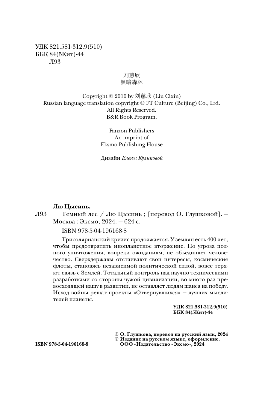 Книга: Темный лес (Лю Цысинь); Эксмо, Fanzon, Редакция 1, 2025