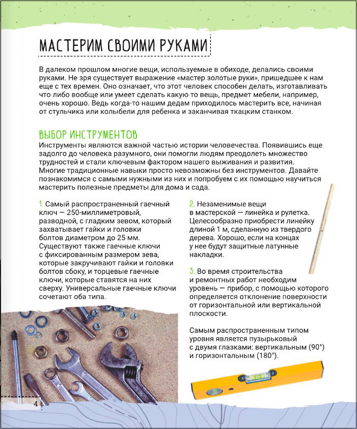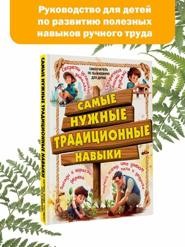 Сделать скворечник и посадить дерево, смастерить этажерку и изготовить елочные игрушки, поставить палатку и развести костер - это все традиционные навыки, которыми в совершенстве владели наши папы и деды. И спустя много лет они не утратили своей ценности, их передавали из поколения в поколение. Современному человеку тоже совсем не лишним будет научиться ловить рыбу, своими руками сделать модель самолета, лук или арбалет, самостоятельно приготовить себе еду, пришить пуговицу или удалить занозу из пальца. В книге приведено множество примеров и подтвержденных на деле советов на все случаи жизни. Это и изготовление самых разных поделок, и рыбалка, и пешие походы, и отношение к здоровью, и уход за собственными вещами, приготовление пищи и другие полезные навыки. Все это поспособствует развитию у детей важных практических навыков, правильному поведению в компании сверстников и в среде взрослых, воспитает у них командный дух, ответственное отношение к порученному делу и, несомненно, повысит самооценку. А иногда, возможно, и поможет спасти жизнь. Для младшего и среднего школьного возраста.