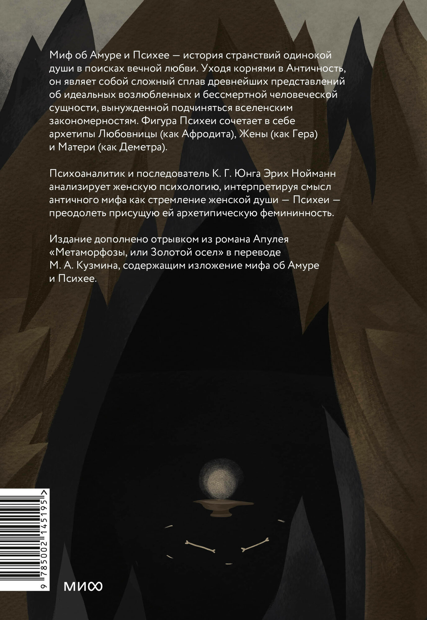 Миф об Амуре и Психее — история странствий одинокой души в поисках вечной любви. Уходя корнями в античность, он представляет собой сложный сплав древнейших представлений об идеальных возлюбленных и философских понятий о бессмертной человеческой сущности, вынужденной подчиняться вселенским закономерностям. Фигура Психеи сочетает в себе одновременно архетипы Любовницы (как Афродита), Жены (как Гера) и Матери (как Деметра). Психоаналитик и последователь К. Г. Юнга Эрих Нойманн анализирует женскую психологию, интерпретируя смысл античного мифа как стремление женской души — Психеи — преодолеть присущую ей архетипическую фемининность. Издание дополнено отрывком из романа Апулея “Метаморфозы, или Золотой осел” в переводе М.А. Кузмина, содержащим изложение мифа об Амуре и Психее.