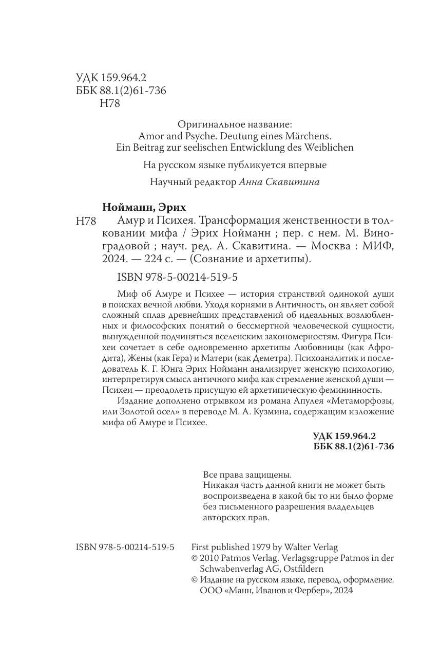 Амур и Психея. Развитие женских архетипов в античных мифах (Эрих Нойманн); Манн, Иванов и Фербер, 2024