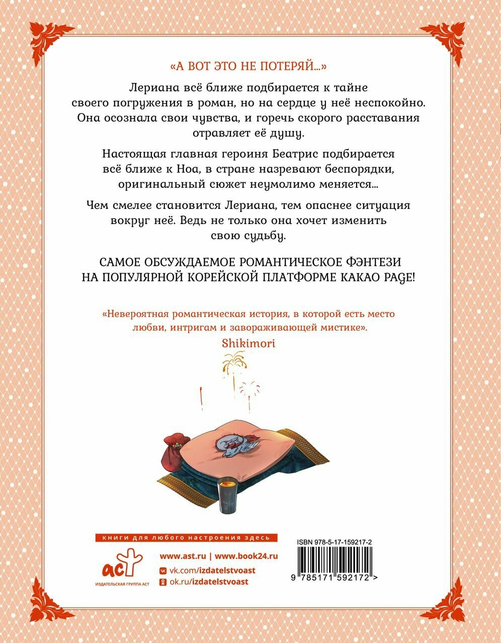 Лериана всё ближе подбирается к тайне своего погружения в роман, но в её сердце неспокойно. Она осознала свои чувства, и горечь скорого расставания отравляет её душу. Настоящая главная героиня Беатрис подбирается всё ближе к Ноа, в стране назревают беспорядки, оригинальный сюжет неумолимо меняется…Чем смелее становится Лериана, тем опаснее ситуация вокруг неё. Ведь не только она хочет изменить свою судьбу.