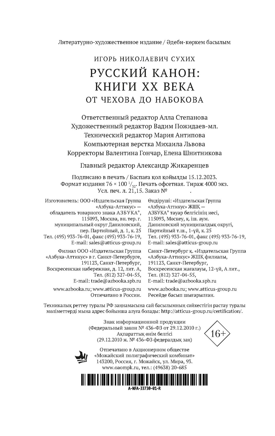 Русский канон: Книги ХХ века. От Чехова до Набокова (Игорь Николаевич Сухих); Азбука, 2024