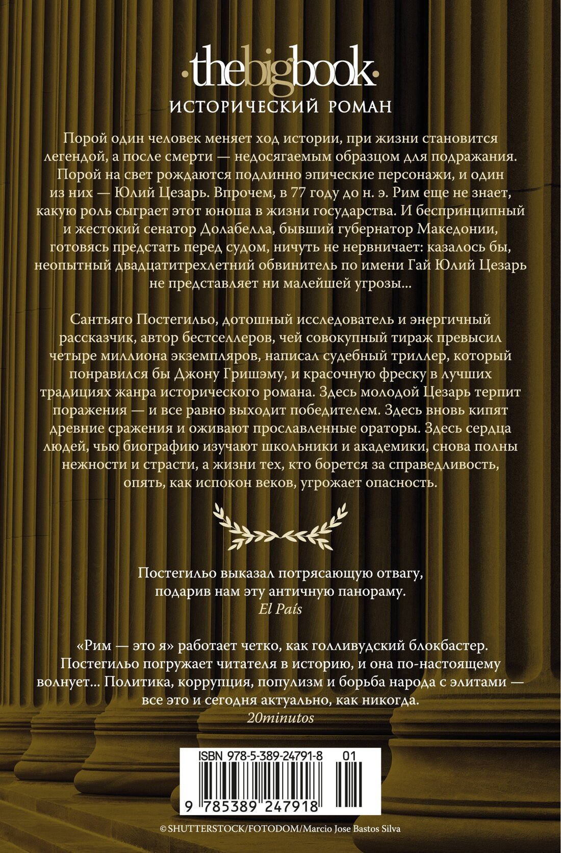 Порой один человек меняет ход истории, при жизни становится легендой, а после смерти — недосягаемым образцом для подражания. Порой на свете рождаются подлинно эпические персонажи, и один из них — Юлий Цезарь, фигура многогранная и сложная, защитник народа и борец с элитами, который превратился в диктатора и за свое стремление к власти поплатился жизнью. Впрочем, в 77 году до н. э. Рим еще не знает, до чего важен окажется этот юноша для государства. И беспринципный и жестокий сенатор Долабелла, бывший губернатор Македонии, готовясь предстать перед судом, ничуть не нервничает: казалось бы, неопытный двадцатитрехлетний обвинитель по имени Гай Юлий Цезарь не представляет ни малейшей угрозы... Сантьяго Постегильо, филолог и лингвист, дотошный исследователь и энергичный рассказчик, автор исторических бестселлеров, посвященных истории Древнего Рима, всю жизнь готовился написать цикл о Юлии Цезаре. «Мне казалось, право писать о нем я должен заслужить», — говорит он. «Рим — это я», судебный триллер, который понравился бы Джону Гришэму, и красочная фреска в лучших традициях жанра исторического романа, — первая книга цикла, и в ней речь идет о малоизвестном эпизоде биографии Цезаря. Здесь Цезарь, еще молодой человек, терпит поражения — и все равно выходит победителем, впервые добиваясь признания масс. Здесь вновь кипят сражения, выигранные две тысячи лет назад, и оживают ораторы, соревнующиеся в красноречии, на котором мы учимся по сей день. Здесь сердца людей, чью биографию изучают школьники и академики, снова полны нежности и страсти, а жизни тех, кто борется за справедливость, опять, как испокон веков, угрожает опасность. Впервые на русском!