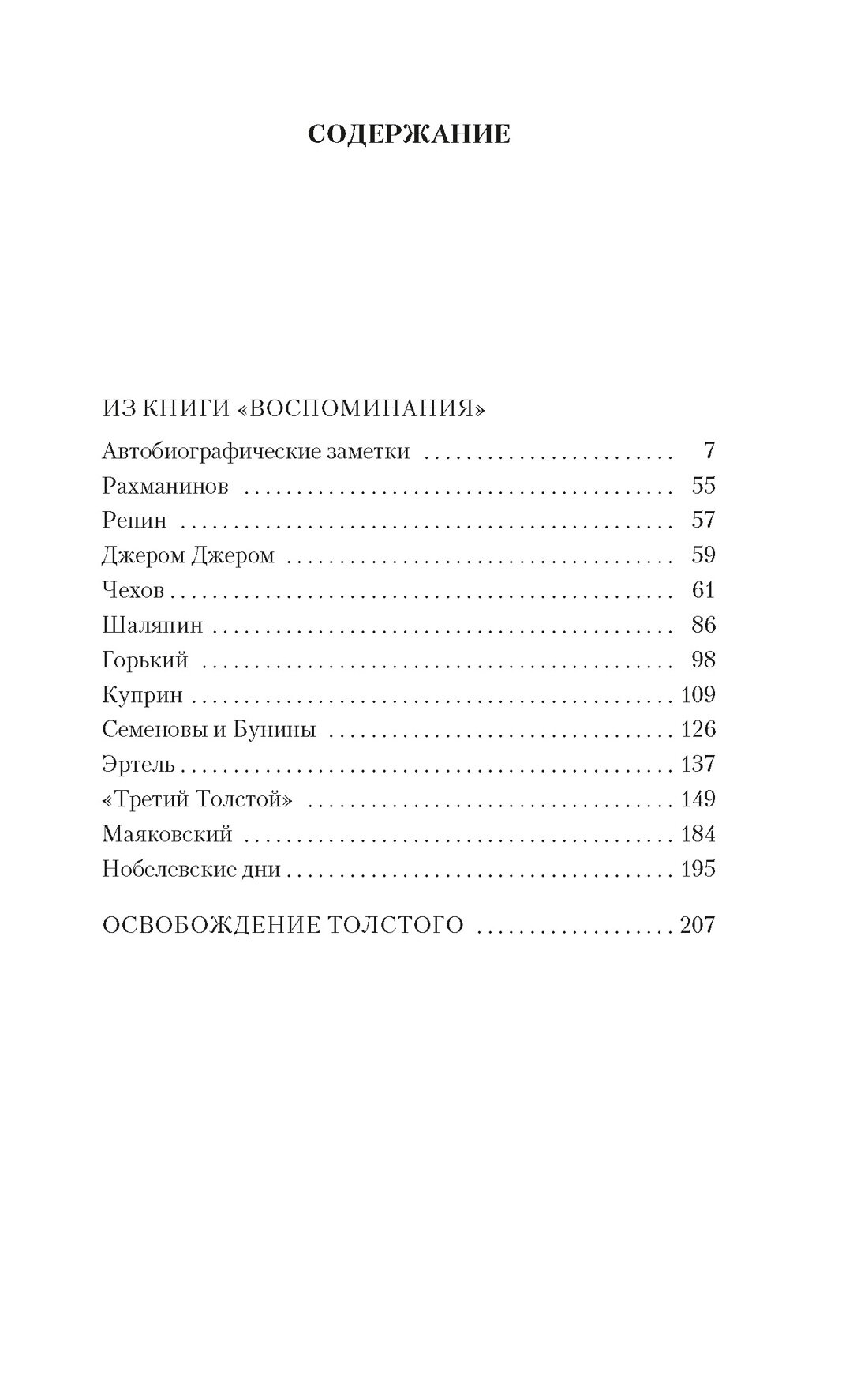 Иван Алексеевич Бунин — поэт и прозаик, первый из русских писателей, удостоенный Нобелевской премии (1933). Его произведения переведены на многие языки мира и навсегда вписаны в золотой фонд мировой литературы. Революция 1917 года заставила Бунина покинуть родину, но память о безвозвратно утраченной России, о людях, с которыми его сводила судьба, стала опорой для всего его дальнейшего творчества. Книга «Воспоминания» увидела свет в 1950 году в Париже, однако первые главы были написаны значительно раньше. Репин, Рахманинов, Чехов, Куприн, Шаляпин — здесь воссозданы портреты тех, с кем Бунин был хорошо знаком. В советской России книгу невозможно было прочесть целиком вплоть до Перестройки, даже в собраниях сочинений писателя из нее изымались фрагменты и главы, где Бунин резко отрицательно, язвительно отзывался о коллегах по цеху, оказавшихся на стороне большевиков: о Горьком, Маяковском, Блоке, Есенине, «Толстом Третьем». В настоящем издании эти пропуски восстановлены по прижизненному изданию. Воспоминания о Л. Н. Толстом, перед которым Бунин всю жизнь благоговел, переросли в эссе «Освобождение Толстого».