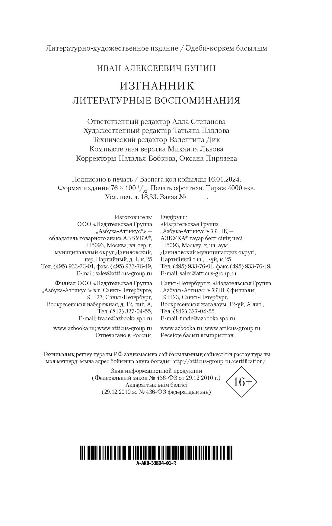 Изгнанник: Литературные воспоминания (Бунин Иван Алексеевич); Азбука, 2024