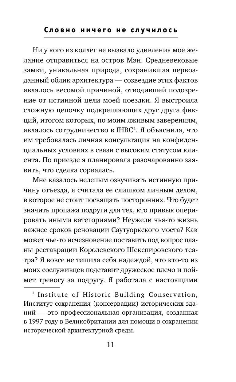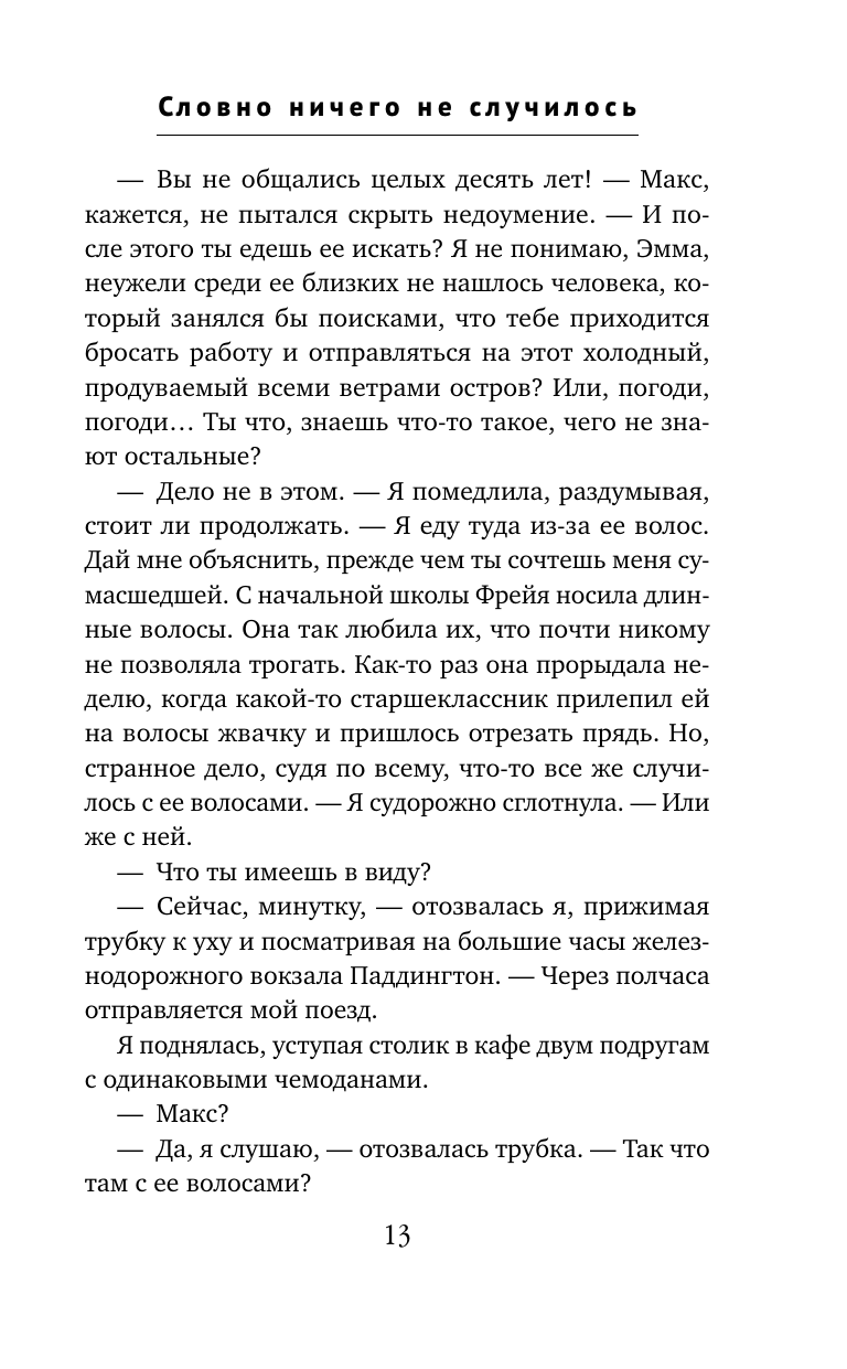 Эмма не была на острове Мэн долгих десять лет, но теперь возвращается, чтобы разыскать пропавшую подругу детства. Их пути разошлись, но двух женщин продолжает связывать запутанная цепочка неверных решений, одно из звеньев которой — загадочный парень в мотоциклетной куртке. Эмма постепенно погружается в неспешную жизнь оторванного от большой земли острова, ей предстоит заново пережить события юности и восстановить хронику последних лет жизни подруги, чтобы понять, почему все вокруг ведут себя так, словно ничего не случилось.
