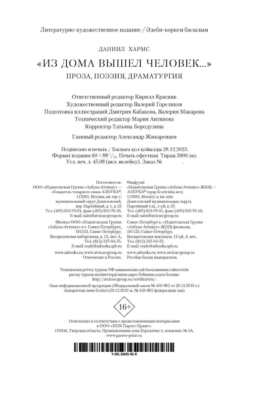 Из дома вышел человек.... Проза поэзия драматургия (Даниил Иванович Хармс); Азбука, 2024