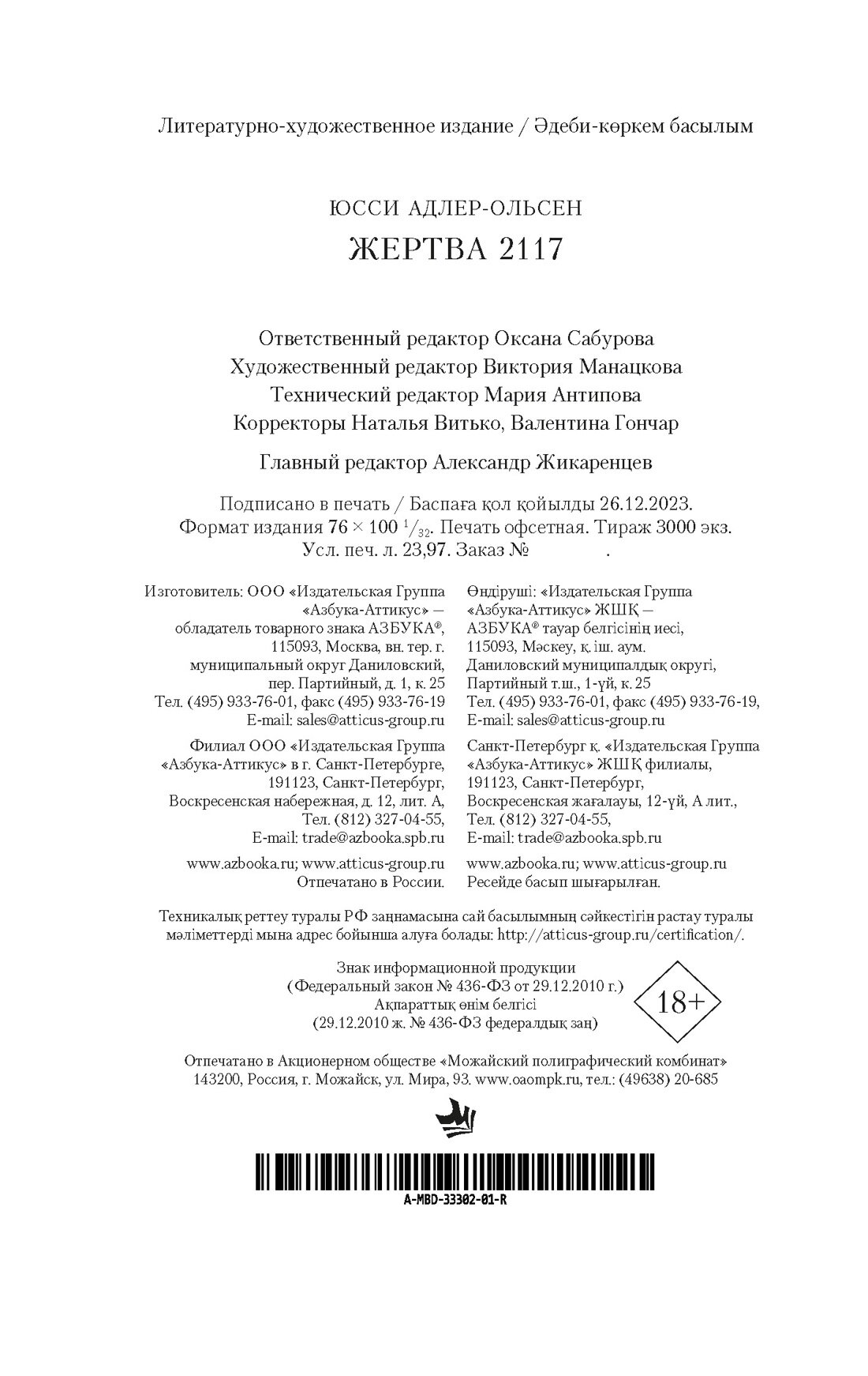 Книга: Жертва 2117 (Юсси Адлер-Ольсен); Азбука, 2024