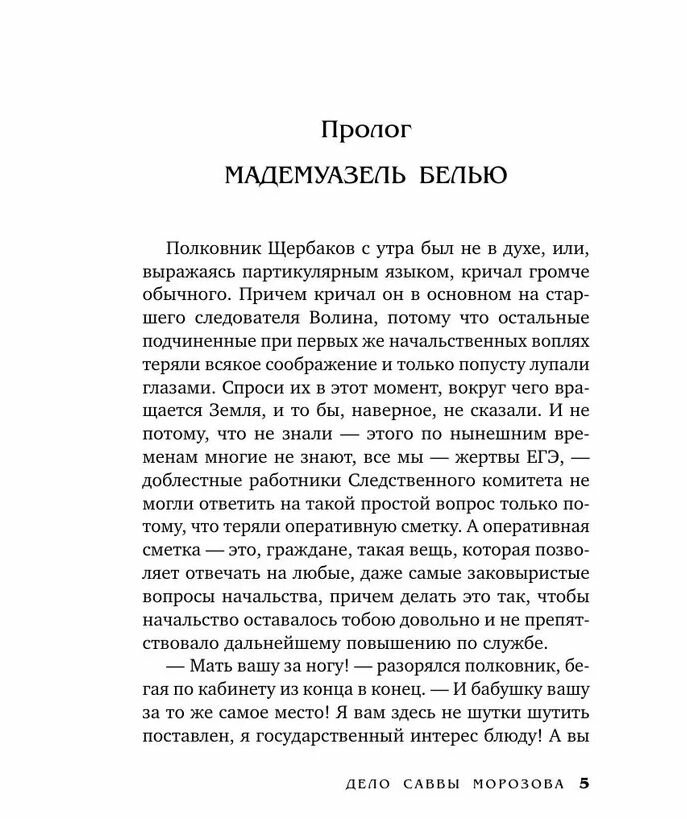 В гости к старшему следователю Следственного комитета Оресту Витальевичу Волину приезжает из Парижа его девушка, капитан французской полиции Ирэн Белью, она же — Ирина Белова. В Москве ей нужно расследовать дело об убийстве криминального авторитета девяностых, ныне — французского бизнесмена Серегина. Серегина убили во Франции, но следы ведут в Россию. Волин и Белова отправляются к генералу Воронцову, который может что-то знать о деятельности Белова в далекие девяностые. Генерал предлагает им прочесть очередной мемуар Нестора Загорского...Весной 1905 года к Нестору Загорскому обращается за помощью Анна Карпова — сестра известного промышленника и мецената Саввы Тимофеевича Морозова. По ее словам, брату грозит смертельная опасность. Загорский соглашается помочь.