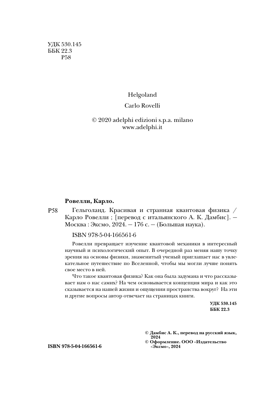 Гельголанд. Красивая и странная квантовая физика (Ровелли Карло); ООО "Издательство "Эксмо", 2024