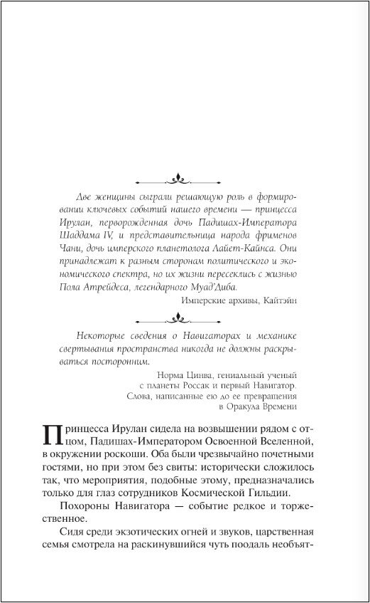 Эта история разворачивается за два года до событий основной "Дюны" благодаря двум женщинам, в свое время сыгравшим выдающиеся роли в жизни Пола Атрейдеса: принцессе Ирулан и фрименке Чани.Власть дома Коррино под угрозой: в армии бунт, спровоцированный неосторожными действиями Шаддама IV. Справляться с ситуацией приходится его дочерям, в первую очередь – наследной принцессе Ирулан, которой предстоит трудная задача: не только сохранить Империю и соблюсти ее интересы, но и не потерять собственный голос среди интриг Бинэ Гессерит, Космической лиги и даже собственных сестер.В это время Чани, дочь имперского планетолога, вместе со сводным братом и группой деятельной молодежи отчаянно борется за сохранение независимости фрименов и кроме того пытается воплотить мечту своего отца о зеленом Арракисе.Кто же из этих двоих настоящая принцесса Дюны?