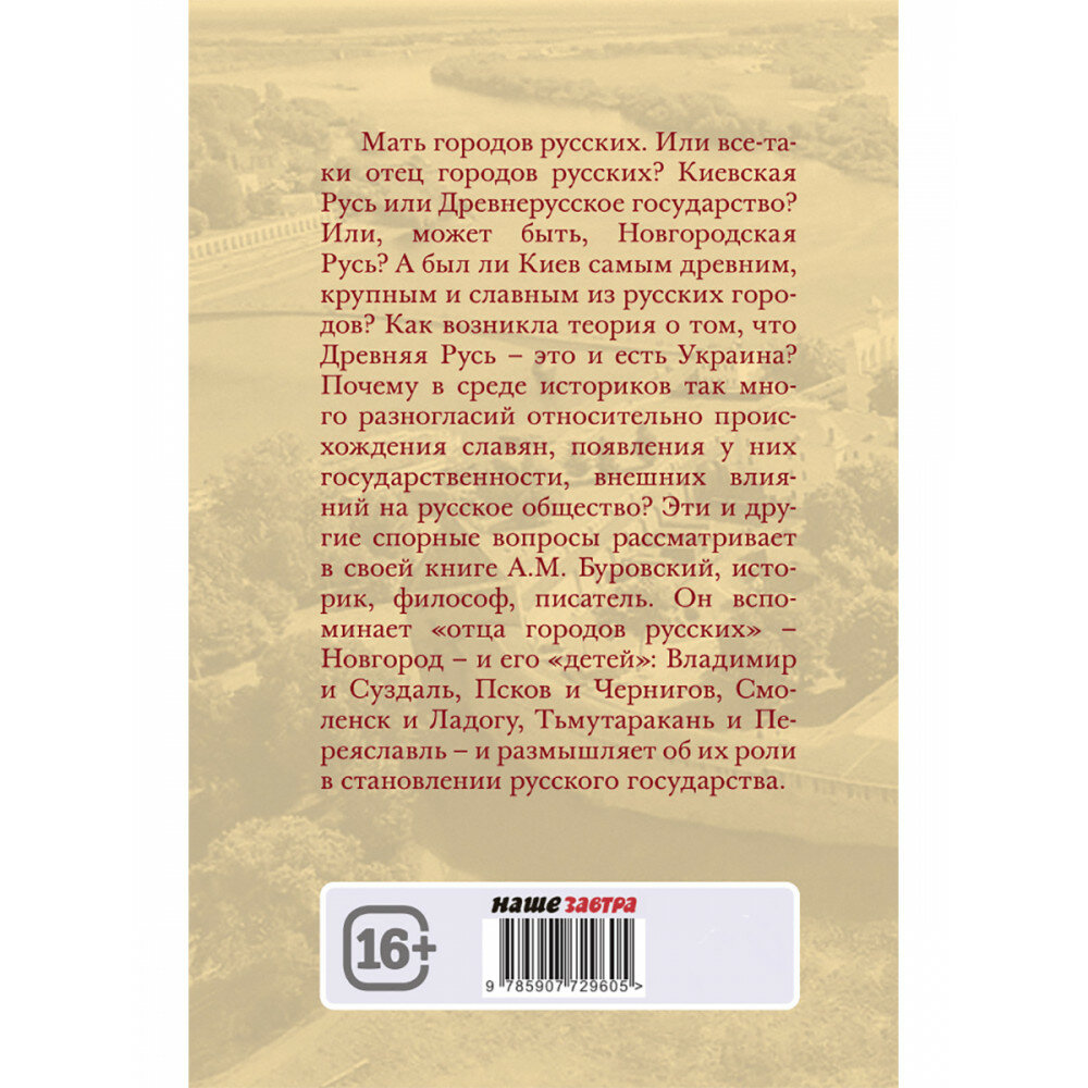 Мать городов русских. Или все-таки отец городов русских? Киевская Русь или Древнерусское государство? Или, может быть, Новгородская Русь? А был ли Киев самым древним, крупным и славным из русских городов? Как возникла теория о том, что Древняя Русь — это и есть Украина? Почему в среде историков так много разногласий относительно происхождения славян, появления у них государственности, внешних влияний на русское общество? Эти и другие спорные вопросы рассматривает в своей книге А. М. Буровский, историк, философ, писатель. Он вспоминает «отца городов русских» – Новгород – и его «детей»: Владимир и Суздаль, Псков и Чернигов, Смоленск и Ладогу, Тьмутаракань и Переяславль – и размышляет об их роли в становлении русского государства.