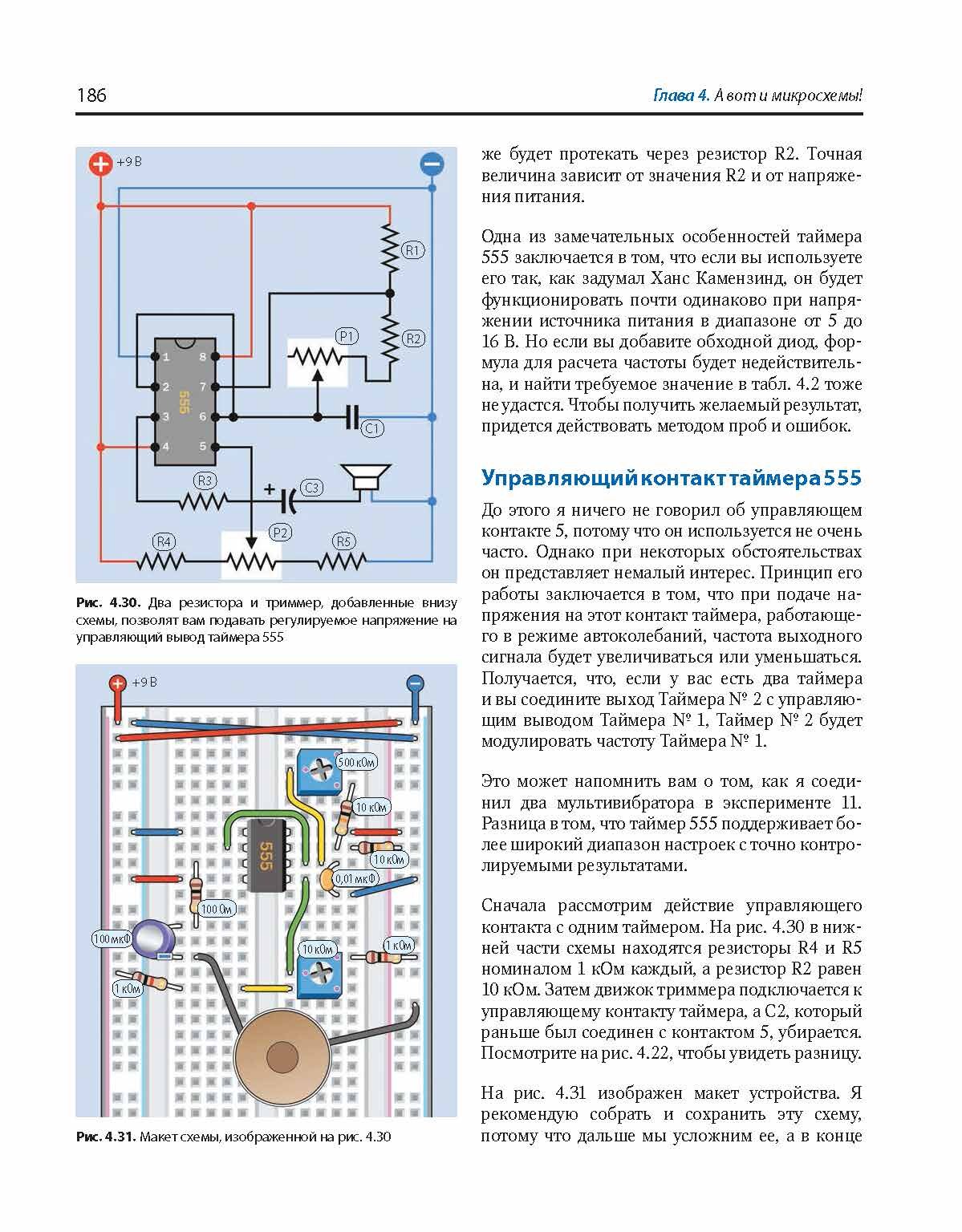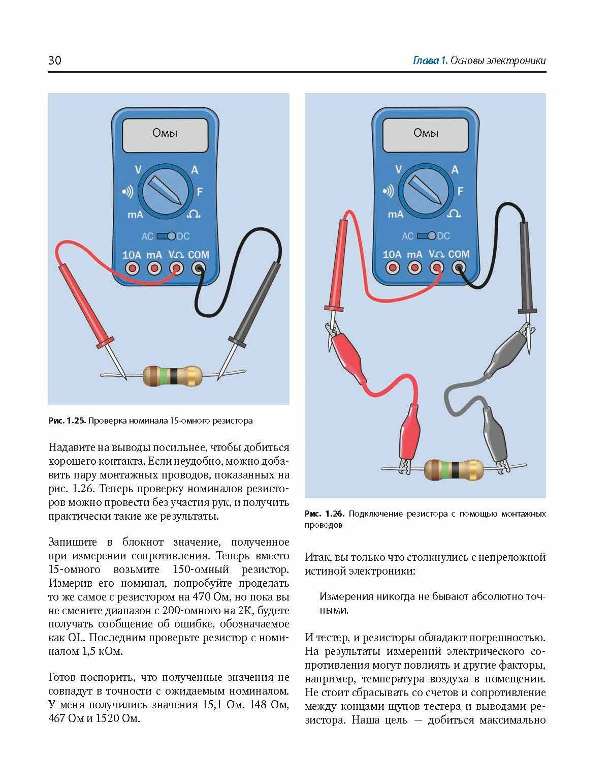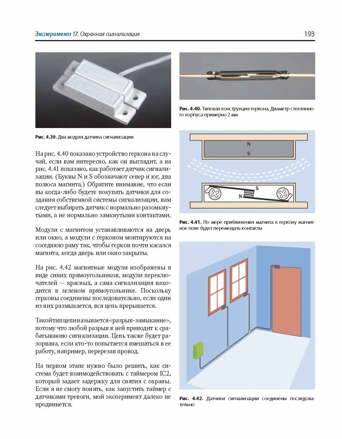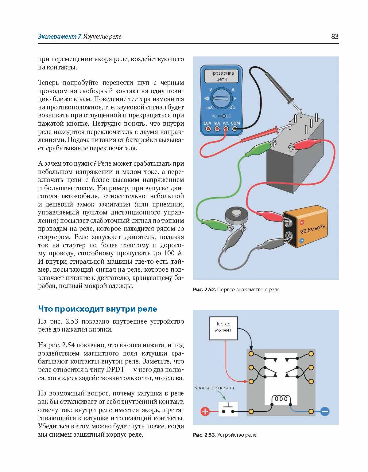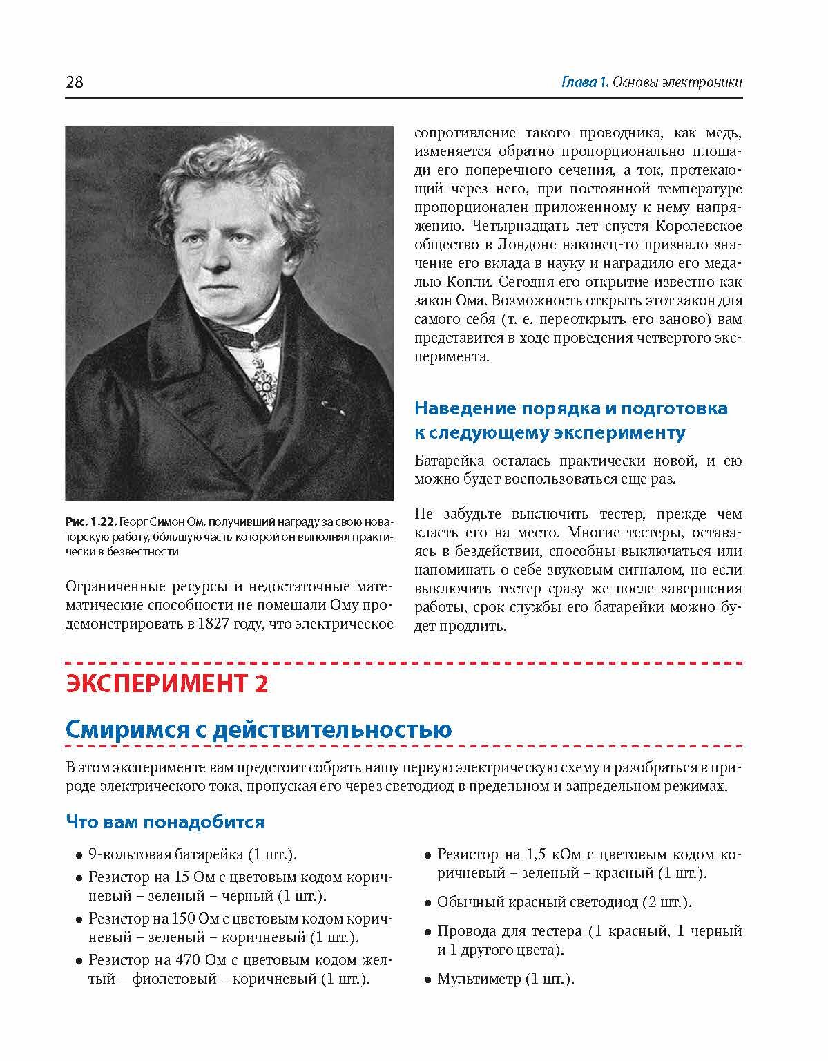 В ходе практических экспериментов рассмотрены основы электроники и показано, как проектировать, отлаживать и изготавливать электронные устройства в домашних условиях. Материал излагается последовательно от простого к сложному, начиная с простых опытов с электрическим током и заканчивая созданием сложных устройств с использованием транзисторов и микроконтроллеров. Описаны основные законы электроники, а также принципы функционирования различных электронных компонентов. Показано, как изготовить охранную сигнализацию, елочные огни, электронные украшения, устройство преобразования звука, кодовый замок и др. Приведены пошаговые инструкции и более 500 наглядных рисунков и фотографий. В третьем полноцветном издании значительная часть текста, схемы и диаграммы обновлены, фотографии пересняты в высоком качестве; число компонентов и их цена уменьшены; проекты с использованием платы Arduino переработаны, рассмотрены и другие микроконтроллеры.