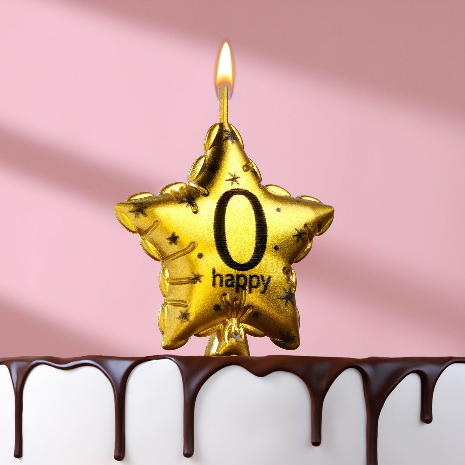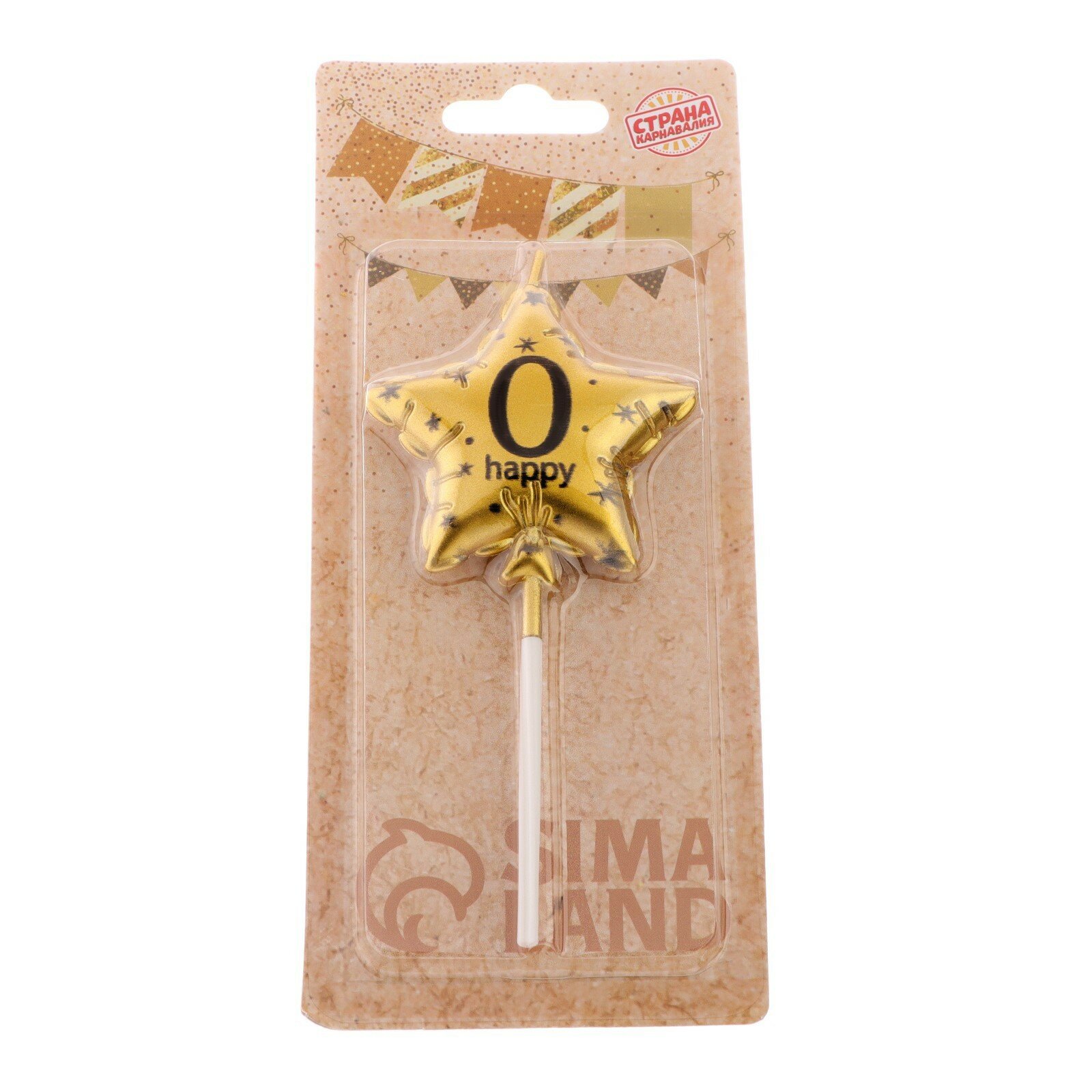 Свеча в торт на шпажке Страна Карнавалия Воздушная звездочка цифра 0 золотистая 55 см