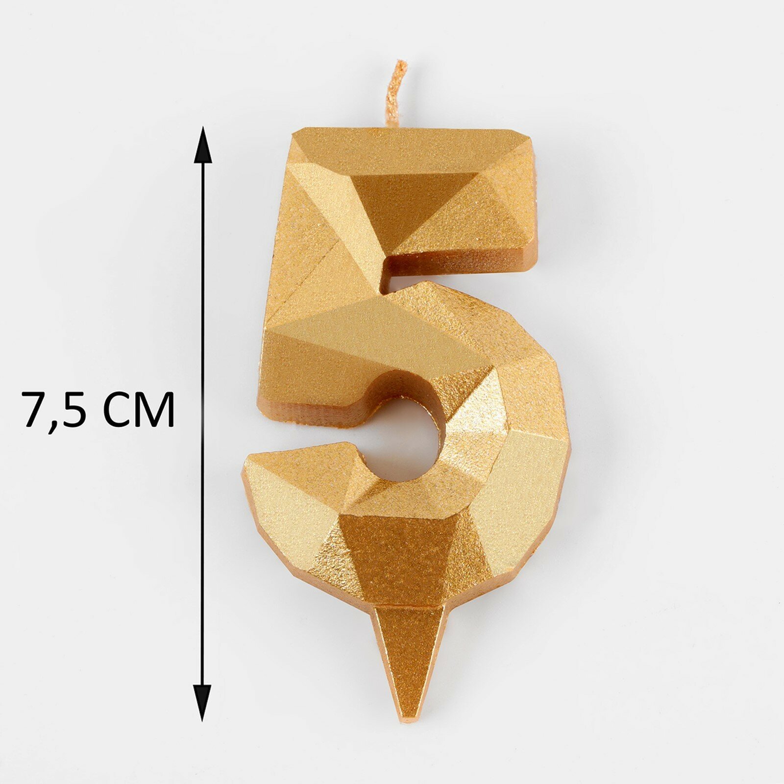 Свеча в торт «Алмаз» цифра 5 золотая 65 см Страна Карнавалия