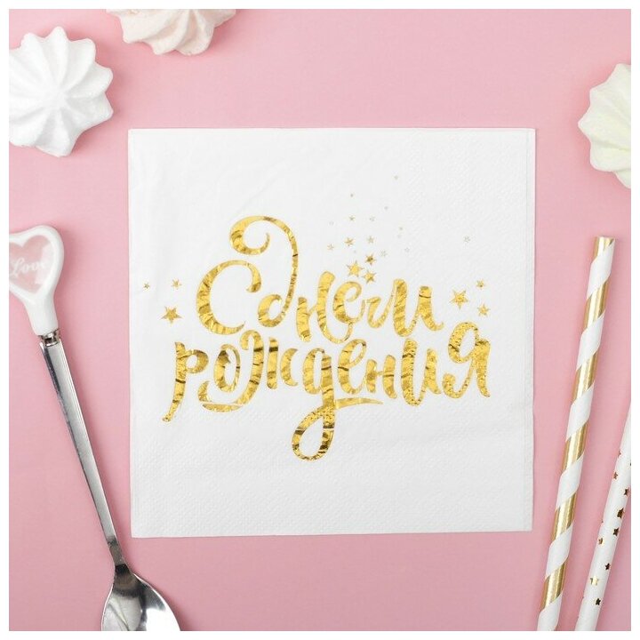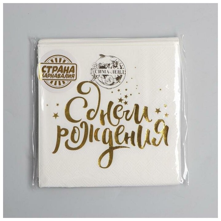 Салфетки бумажные Страна Карнавалия «С днём рождения» 25х25 см 20 шт золотое тиснение