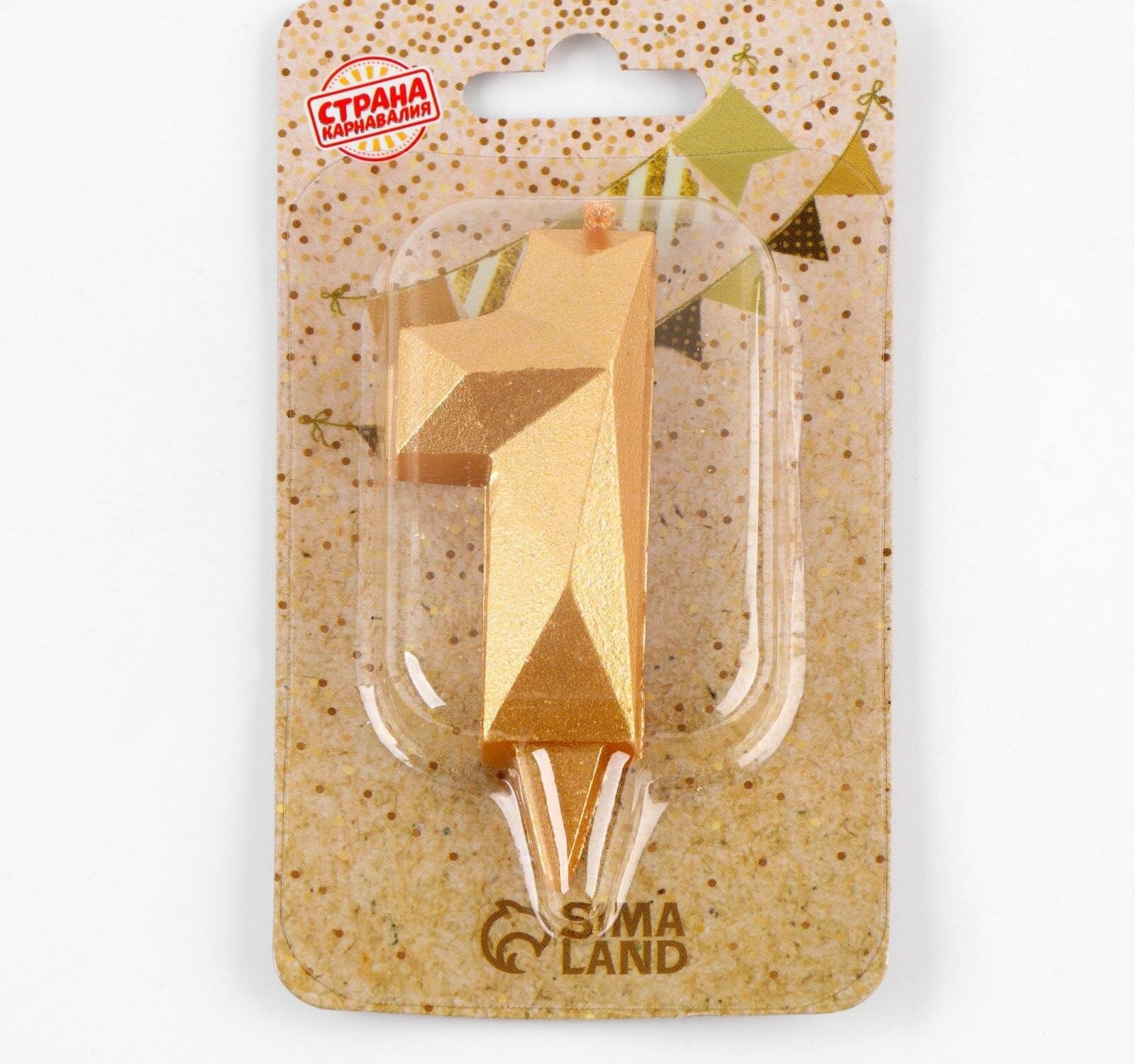 Свеча в торт «Алмаз» цифра 1 золотая 65 см Страна Карнавалия