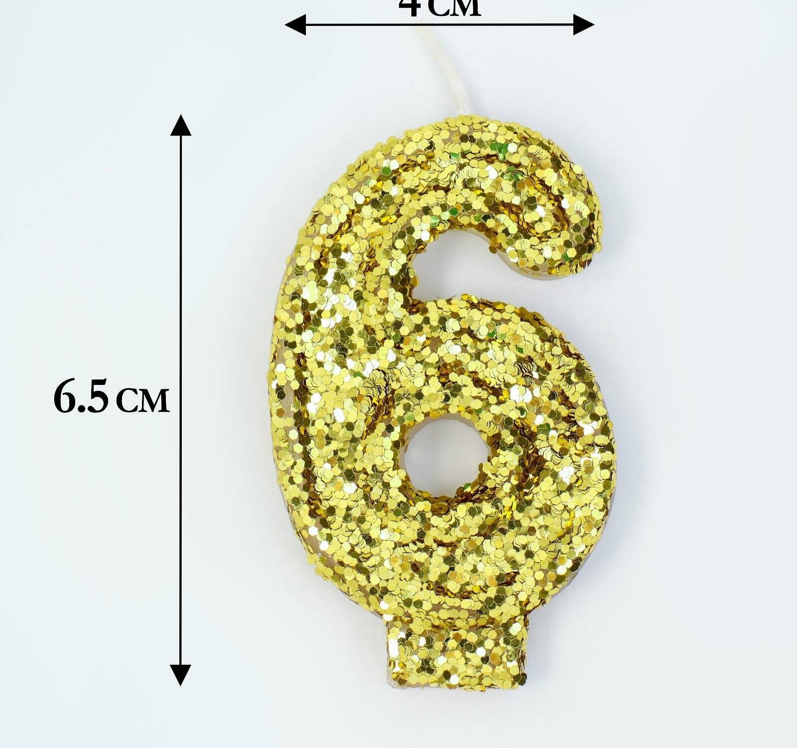 Свеча в торт Страна Карнавалия Блестки золотистая цифра 6
