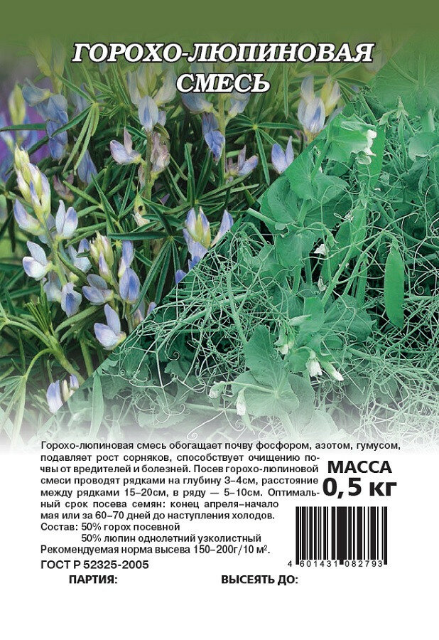 | Состав | Горох посевной -50%; Люпин однолетний узколистный - 50% |