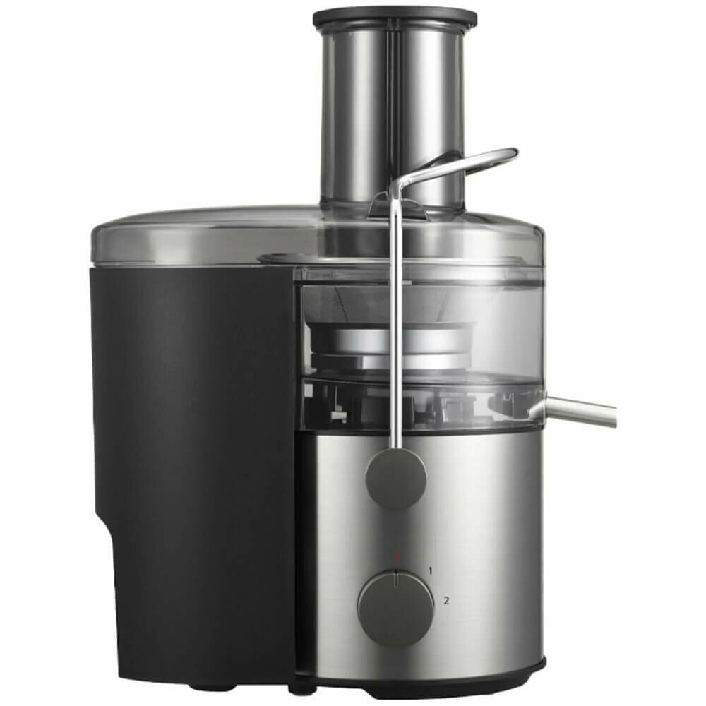 Большой диаметр загрузочного отверстия в 75 мм позволяет легко подготовить и обработать крупные куски фруктов и овощей без предварительной нарезки. Вместительная чаша для сока объемом 1,5 л и контейнер для мякоти на 2 литра обеспечивают возможность готовить достаточное количество сока за один раз.