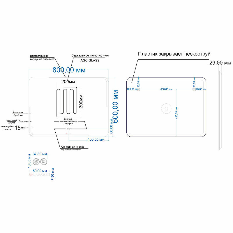 Модель: Electra 90 electra.90/110 с подсветкой с сенсорным выключателем и подогревом