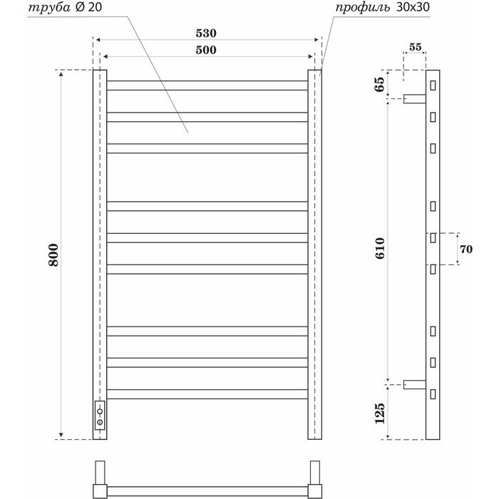 | Гарантия | 2 года - корпус полотенцесушителя |