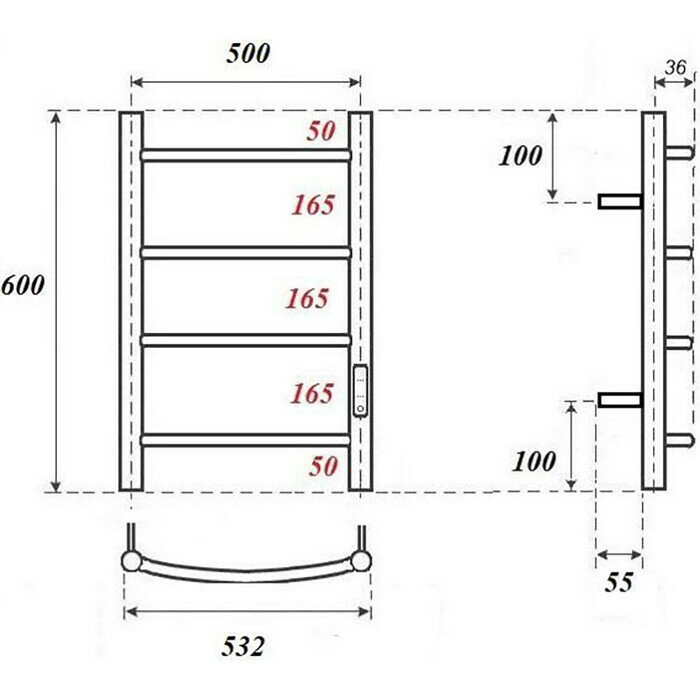 Полотенцесушитель электрический Point Афина П4 500x600 диммер справа белый PN04856W (размер: 60x53 см)
