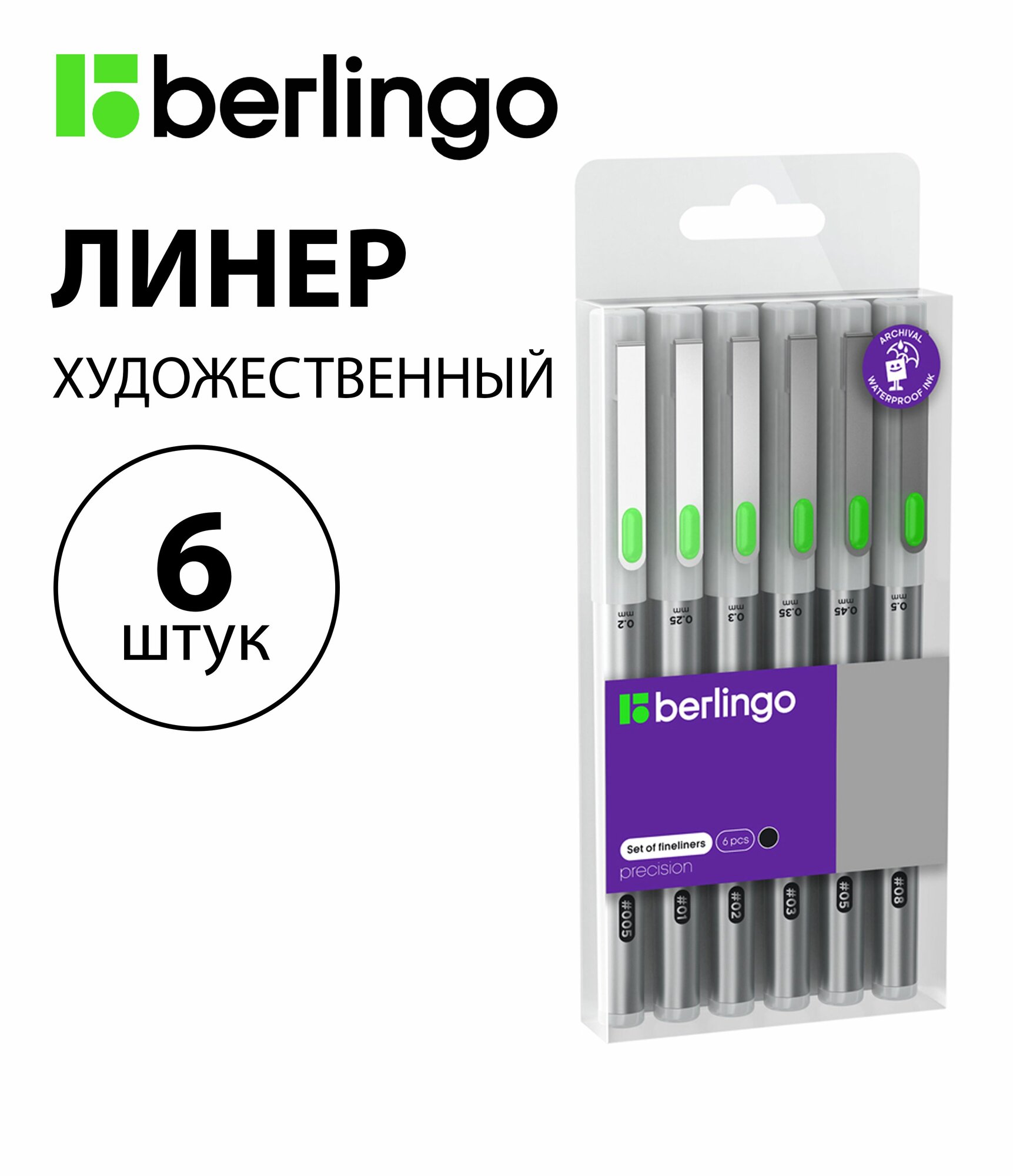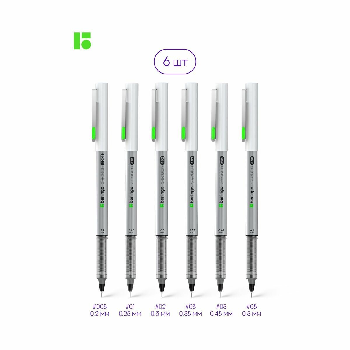 Набор капиллярных ручек Berlingo "Precision" черные 6 шт 02/025/03/035/045/05 мм европодвес (CK_50260)