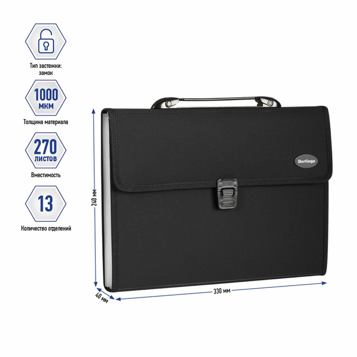 Папка-портфель 13 отделений Berlingo "Standard" А4 330*240*40 мм 1000 мкм черная (MF2305)