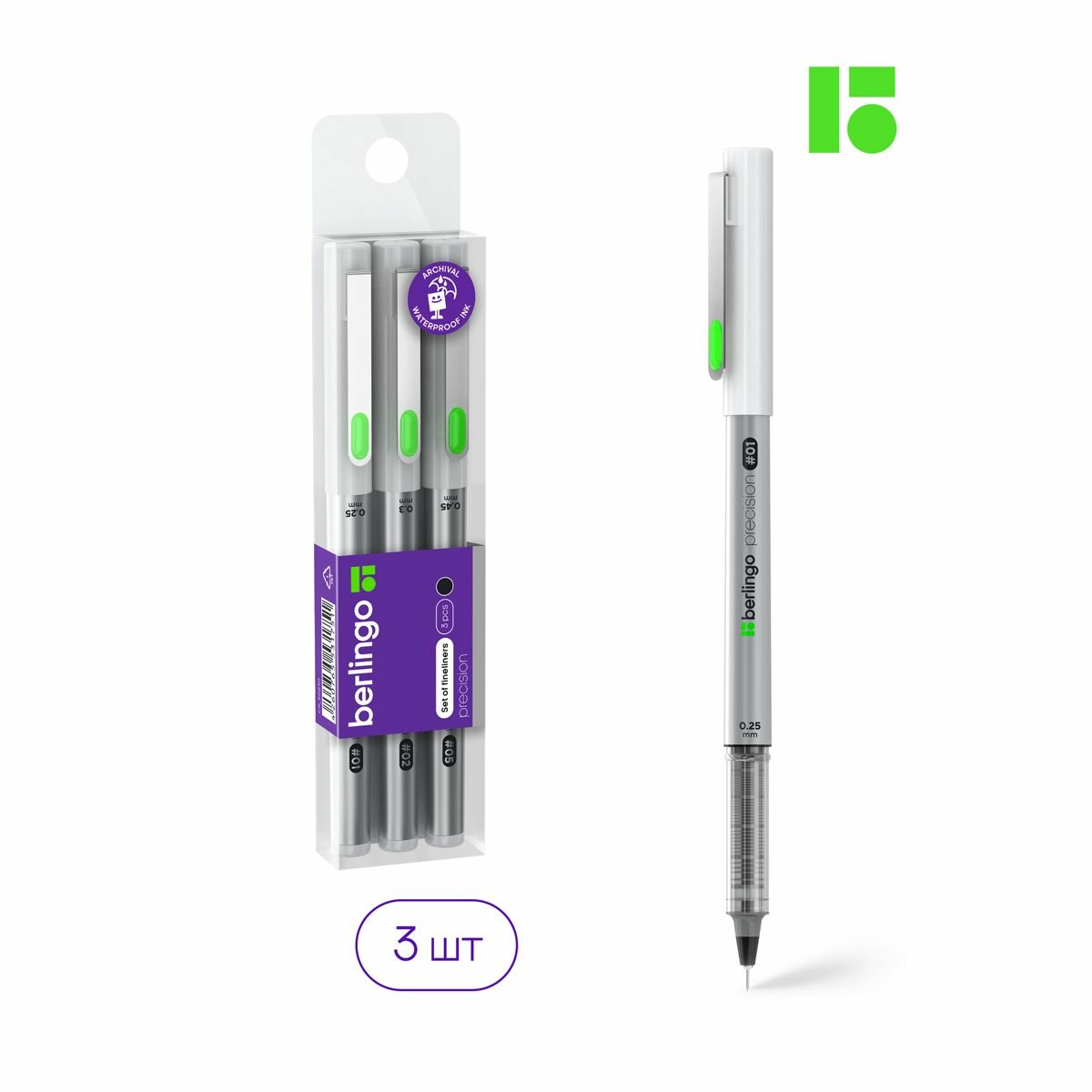 Набор капиллярных ручек Berlingo "Precision" черные 3 шт 025 / 03 / 045 мм европодвес (CK_50230)
