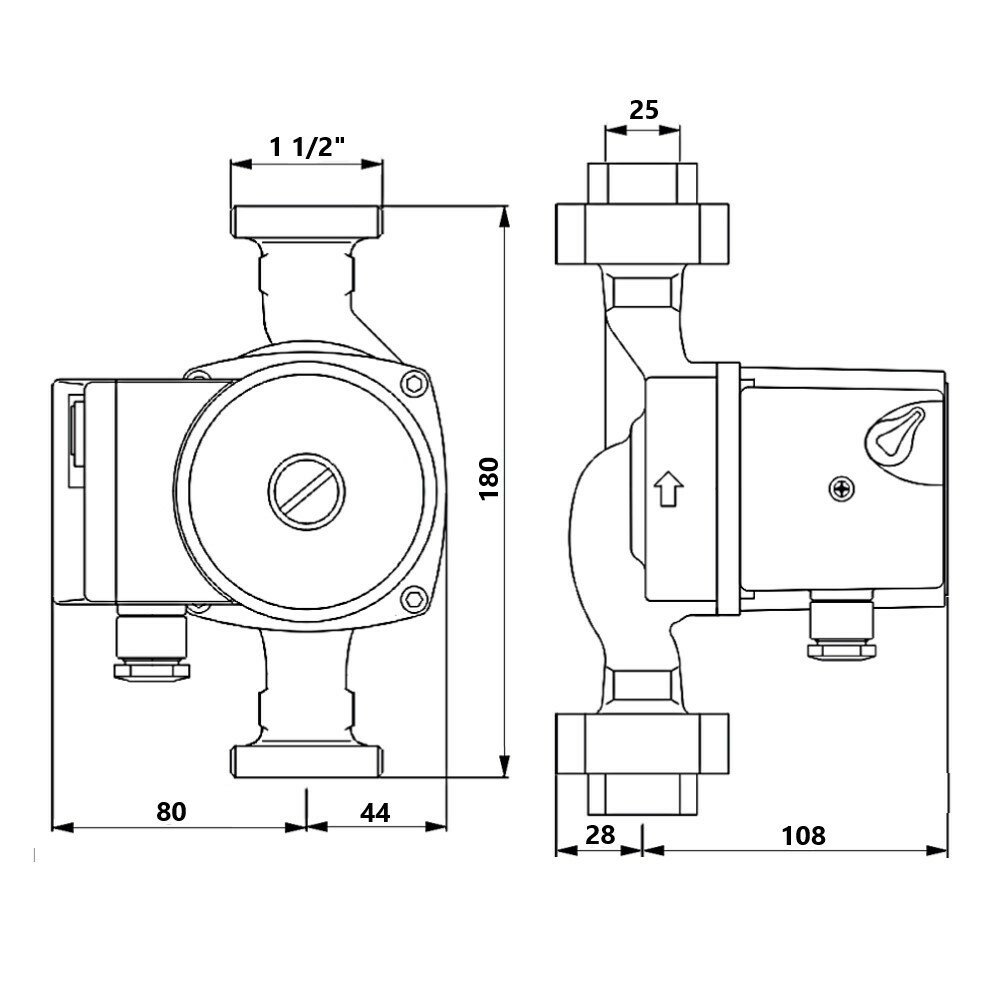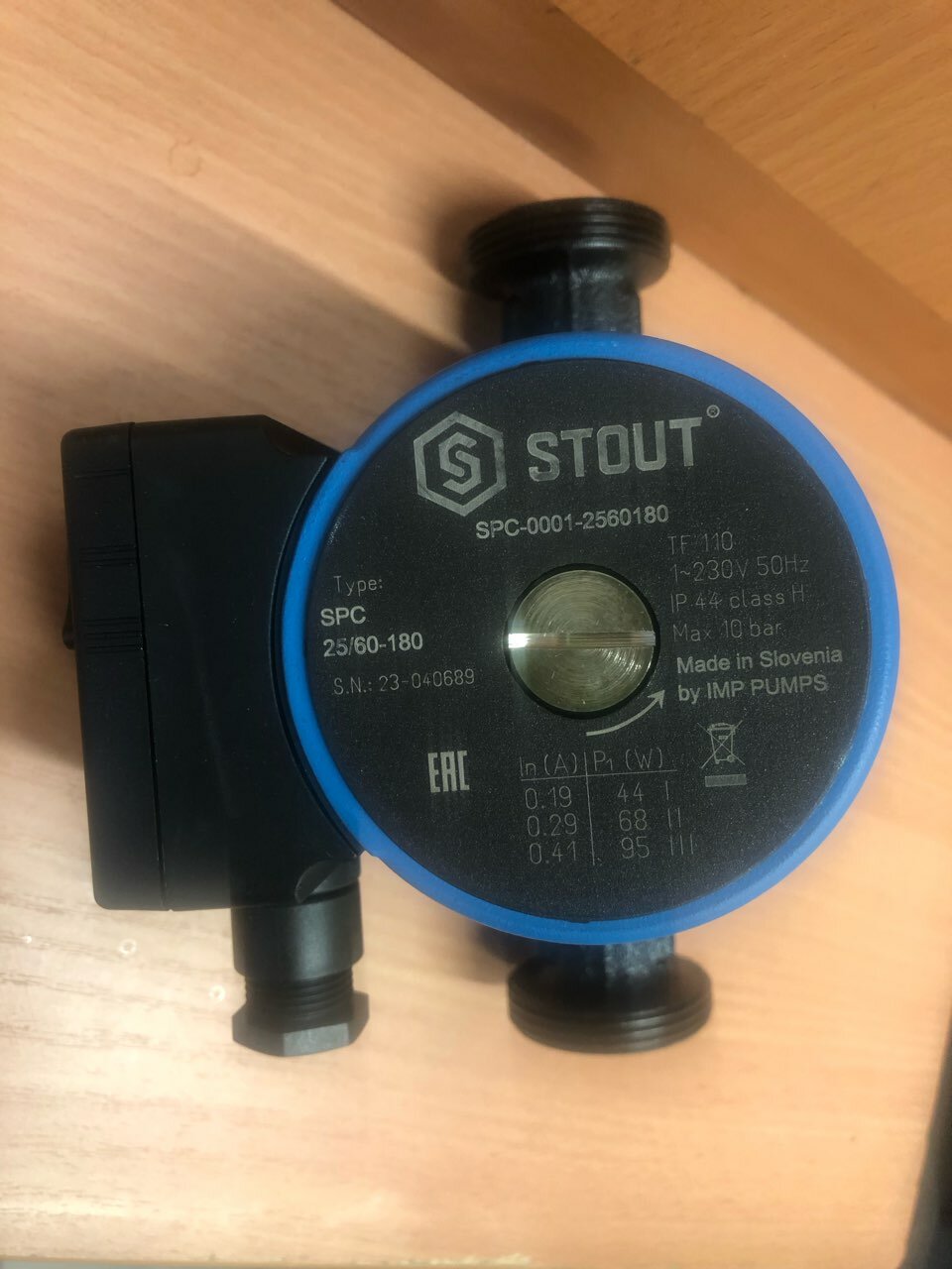 Циркуляционный насос Stout 25/60-180 с гайками (SPC-0001-2540180) предназначен для создания принудительной циркуляции теплоносителя в различных системах отопления, системах нагрева ГВС, системах отопления типа «тёплый пол», циркуляционном контуре, в системах кондиционирования, а также в системах охлаждения промышленного оборудования и т. д. Резьбовой 3-х скоростной циркуляционный насос Stout SPC-0001-2540180 исполнен как одинарный агрегат с переменной частотой вращения. Скорость вращения регулируется при помощи ручного переключателя, размещенного на клеммной коробке. Насос имеет исполнение «с мокрым ротором» - это значит, что детали насоса охлаждаются перекачиваемой жидкостью. Рабочая среда В качестве рабочей среды для насоса Стоут необходимо использовать очищенную воду, не содержащую нерастворимые механические примеси, либо незамерзающей жидкости на основе пропилен- или этиленгликоля, не агрессивные к материалам насоса и соответствующие параметрам систем центрального отопления. Конструкция и материалы циркуляционного насоса Стаут 1 - Корпус (чугун, катафорезное покрытие) 2 - Рабочее колесо (NORY) 3 - Вал (нержавеющая сталь AISI 420) 4 - Подшипники (графит) 5 - Корпус ротора (Нержавеющая сталь AISI 316) 6 - Уплотнительные прокладки из EPDM 7 - Присоединительные фитинги из чугуна Габариты насоса Stout SPC-0001-2540180 DN - 25 мм L - 180 мм H - 108 мм h - 28 мм I - 80 мм b - 44 мм G - 1 1/2" НР Рекомендации по монтажу и эксплуатации циркуляционного насоса Стаут SPC-0001 Перед насосом рекомендуется устанавливать фильтр механической очистки с размером ячейки не более 500 мкм. Перед установкой насоса система отопления должна быть промыта. Монтаж производится непосредственно на трубопроводе, предпочтительно на вертикальном трубопроводе, чтобы исключить накопление отложений в насосе. Направление стрелки на корпусе насоса должно совпадать с предполагаемым направлением движения перемещаемой среды. Монтаж циркуляционных насосов Stout в трубопроводной системе должен выполняться квалифицированными специалистами. Циркуляционные насосы Stout должны эксплуатироваться при давлении и температуре, изложенных в техническом паспорте.
