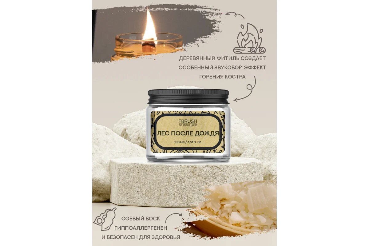Свеча ароматизированная в стекле Лес после дождя SBIO100-5 коричневая 6 см FBRUSH