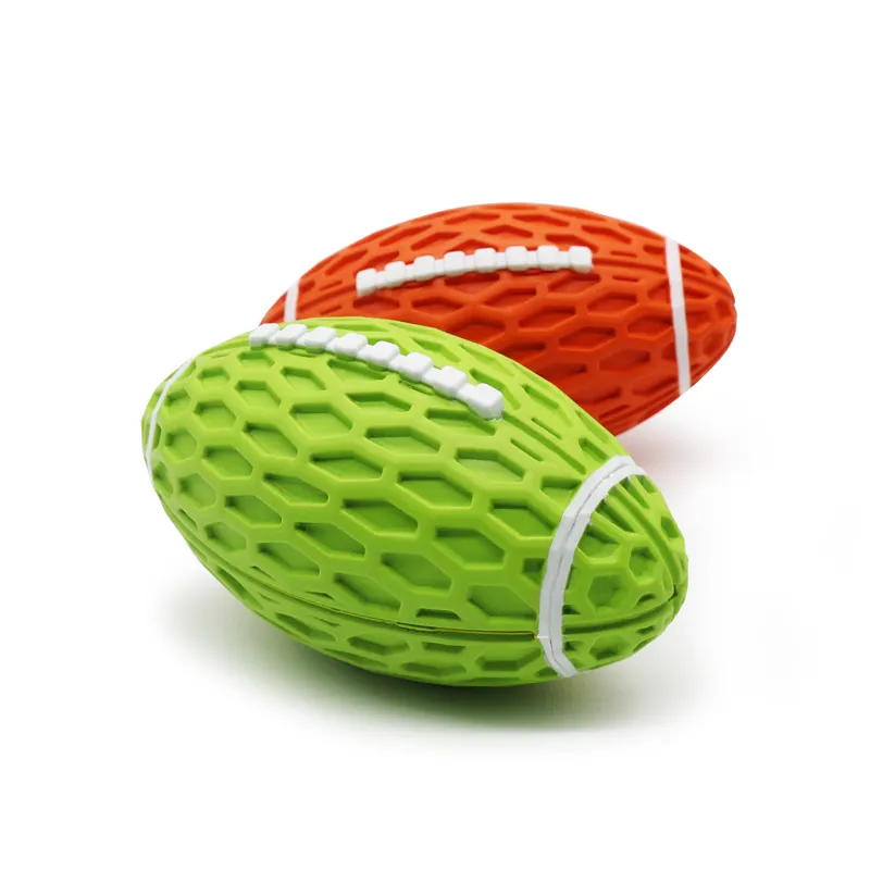 SkyRus Игрушка для собак резиновая "Мяч регби с сотами" зелёная 14.5x8.2x7.9см (088040/green)