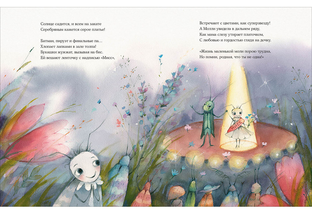 Серая моль Молли так бледна и невзрачна, что никто ее не замечает - ни на уроках, ни в играх. Так обидно! Ведь Молли тоже хочется дружить с кем-нибудь и не быть все время одной. И вот однажды в школе объявили конкурс на звание "Мисс"! Ах, если бы Молли смогла победить! Тогда бы ее обязательно заметили, и, может быть, у нее бы появились подруги. Но чем удивить жюри и зрителей? Ведь Молли не рисует, не вяжет, не умеет громко жужжать и не может похвастаться яркими крылышками. Как же быть? И тут на помощь приходит. мама! Для детей дошкольного возраста.