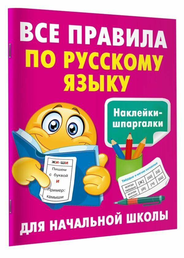 "Все правила по русскому языку" - это справочное пособие для учеников начальной школы. На его страницах в простой и наглядной форме представлены все основные правила по русскому языку, изучаемые в 1-4 классах. Цветовое выделение отдельных элементов текста облегчает запоминание информации, делает процесс обучения эффективным. Также под обложкой ученик найдет цветные наклейки-шпаргалки - надежную памятку, которая позволит школьнику легко освоить алфавит, выучить падежи, запомнить падежные вопросы, научиться определять главные и второстепенные члены предложения. Стикеры можно наклеить на обложку учебника или тетради - таким образом, все нужные правила всегда будут перед глазами. Для начального образования.