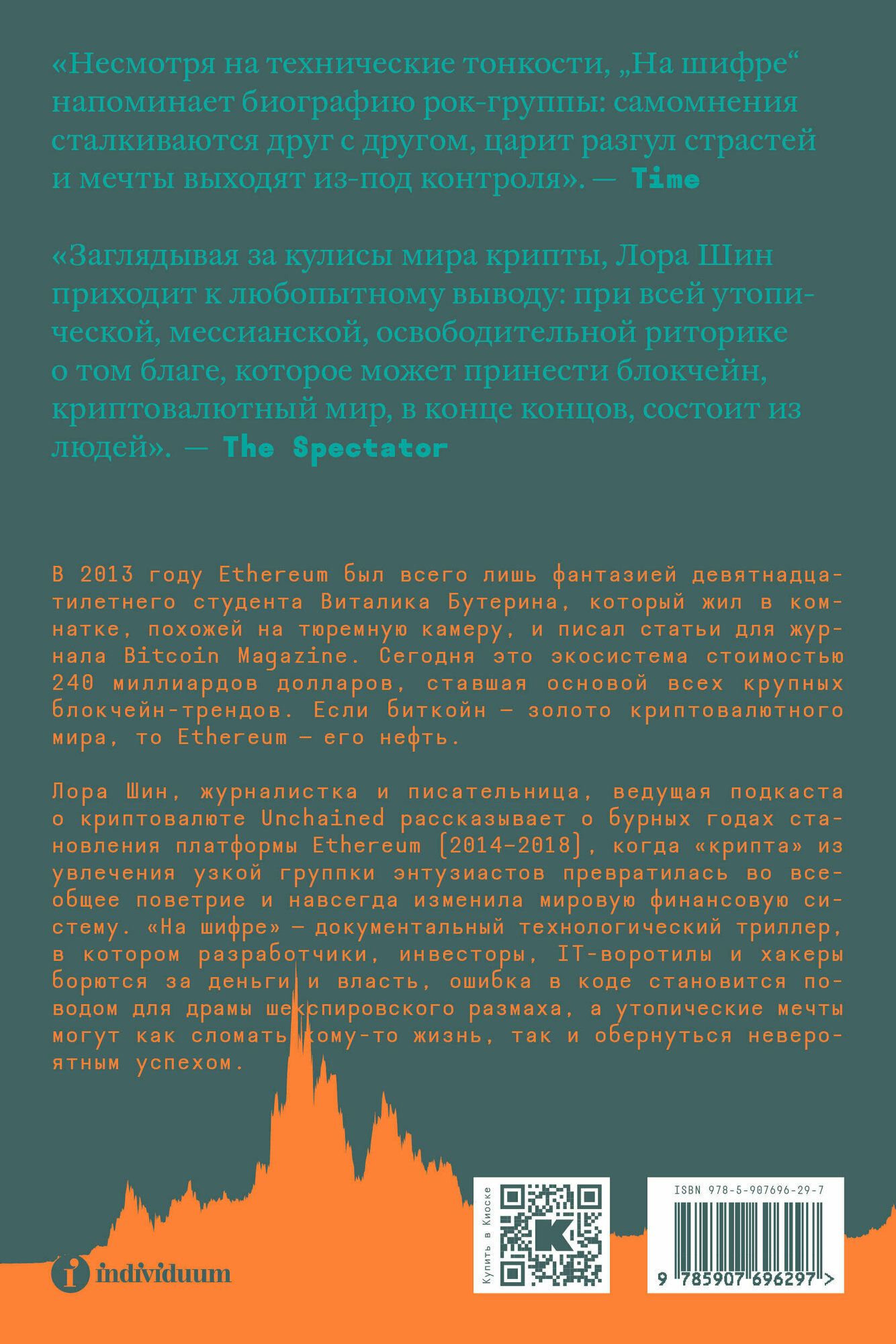 Лора Шин, журналистка и писательница, ведущая подкаста о криптовалюте Unchained рассказывает о бурных годах становления платформы Ethereum (2014-2018), когда «крипта» из увлечения узкой группки энтузиастов превратилась во всеобщее поветрие и навсегда изменила мировую финансовую систему. «На шифре» — документальный технологический триллер, в котором разработчики, инвесторы, IT-воротилы и хакеры борются за деньги и власть, ошибка в коде становится поводом для драмы шекспировского размаха, а утопические мечты могут как сломать кому-то жизнь, так и обернуться невероятным успехом.