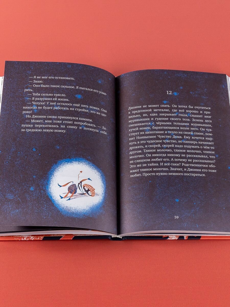 В этом путешествии их ждут открытия и опасности, а однажды ночью Джонни встречает прерасную жучиху, которая катала по полянке восхитительный, ароматный, идеальный шарик навоза! И вот он уже не в силах удержать вибрацию в своем нутре, дает ей волю, створки на его спине раскрываются, и из них появляются настоящие крылья! Да, Джонни был вовсе не муравьем.
