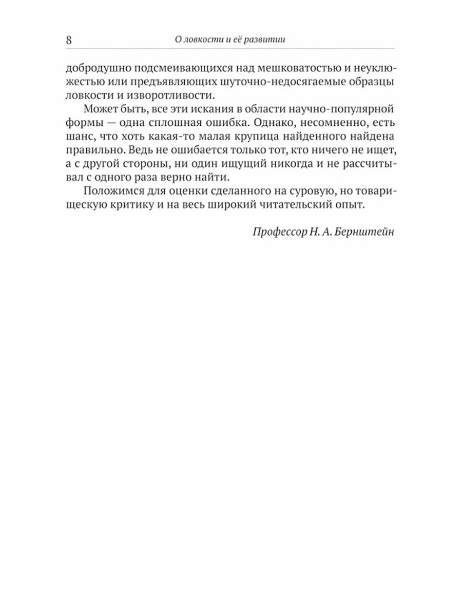 Написанная более 70 лет назад книга остаётся актуальной и оригинальной по сей день. Она даёт уникальный взгляд на психофизическую ловкость и координацию, поднимает вопросы их развития. Читателям дана возможность восстановить утраченное знание и погрузиться в мир науки и физической активности.