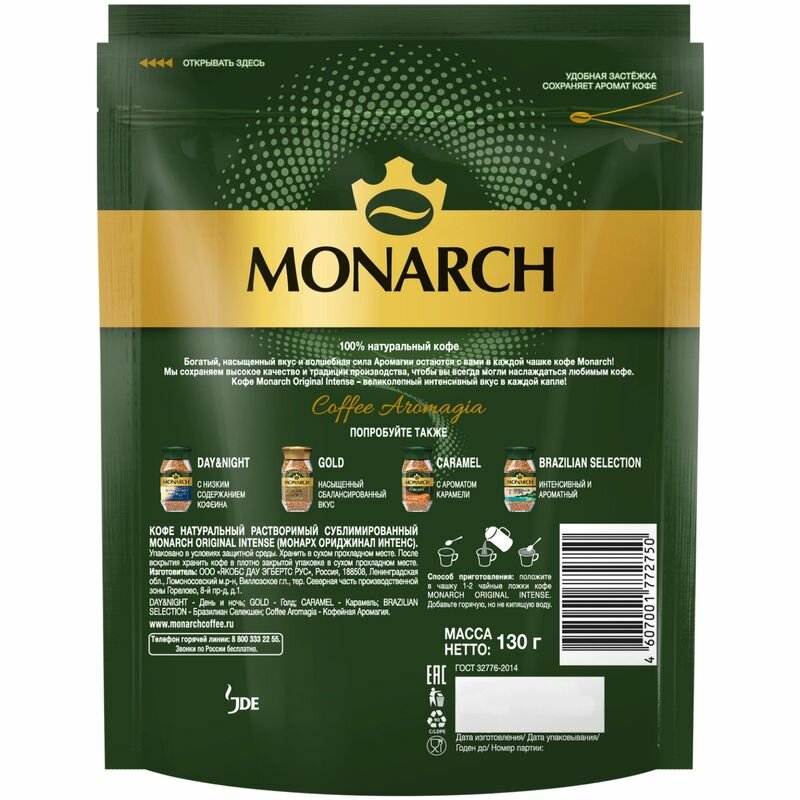 Кофе растворимый Monarch Original Intense пакет 130 г Jacobs