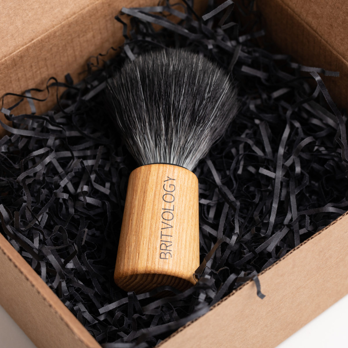 Помазок BRITVOLOGY с синтетическим ворсом из черной фибры произведен в Германии и идеально подходит для взбивания пены. Рукоять из ясеня, цвет светлого дерева, размеры - ширина 40 мм, высота 125 мм и длина 40 мм. Синтетическая фибр более устойчива к износу, быстро сохнет и легко чистится. После бритья достаточно просто промыть помазок чистой водой.